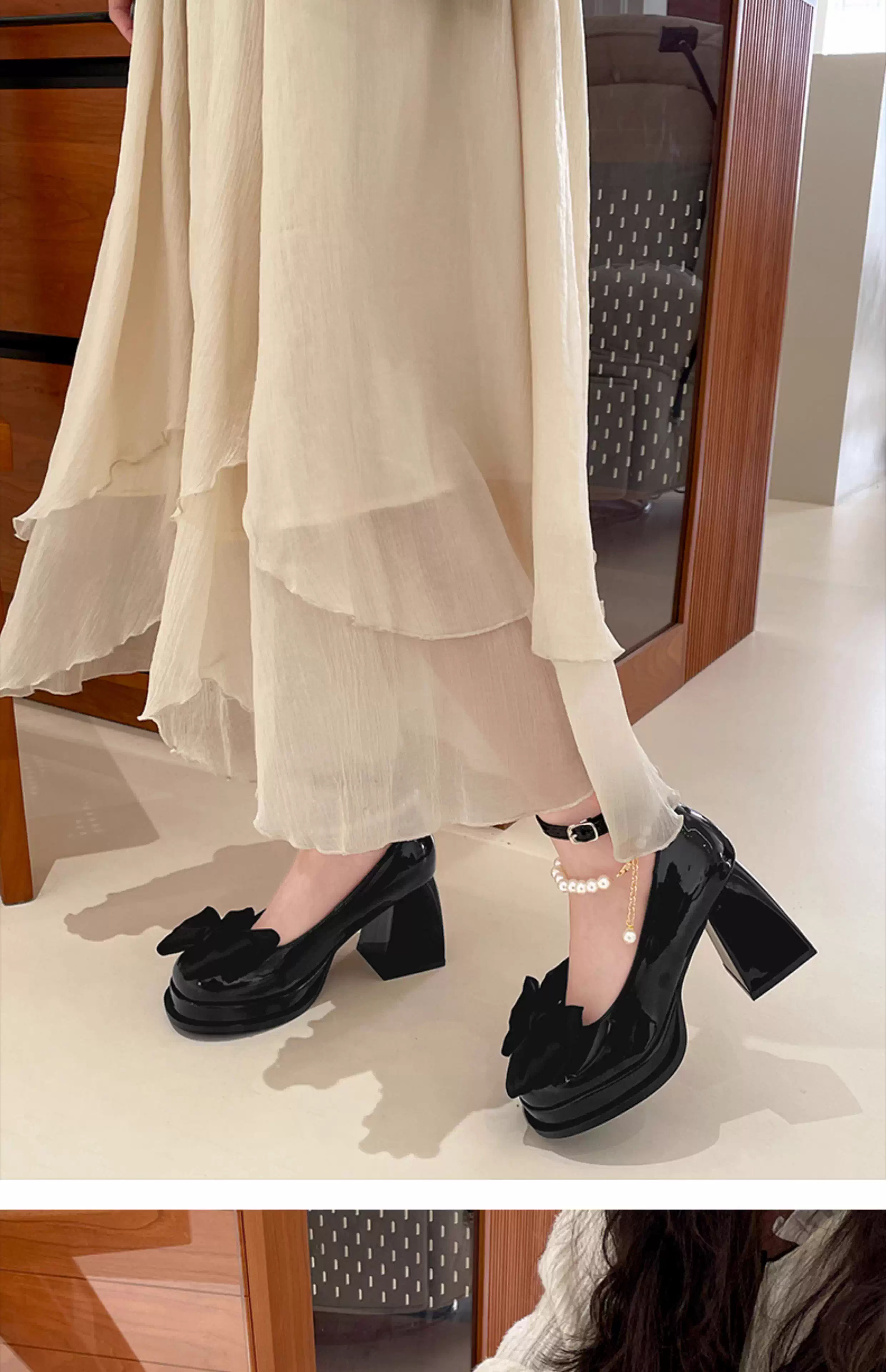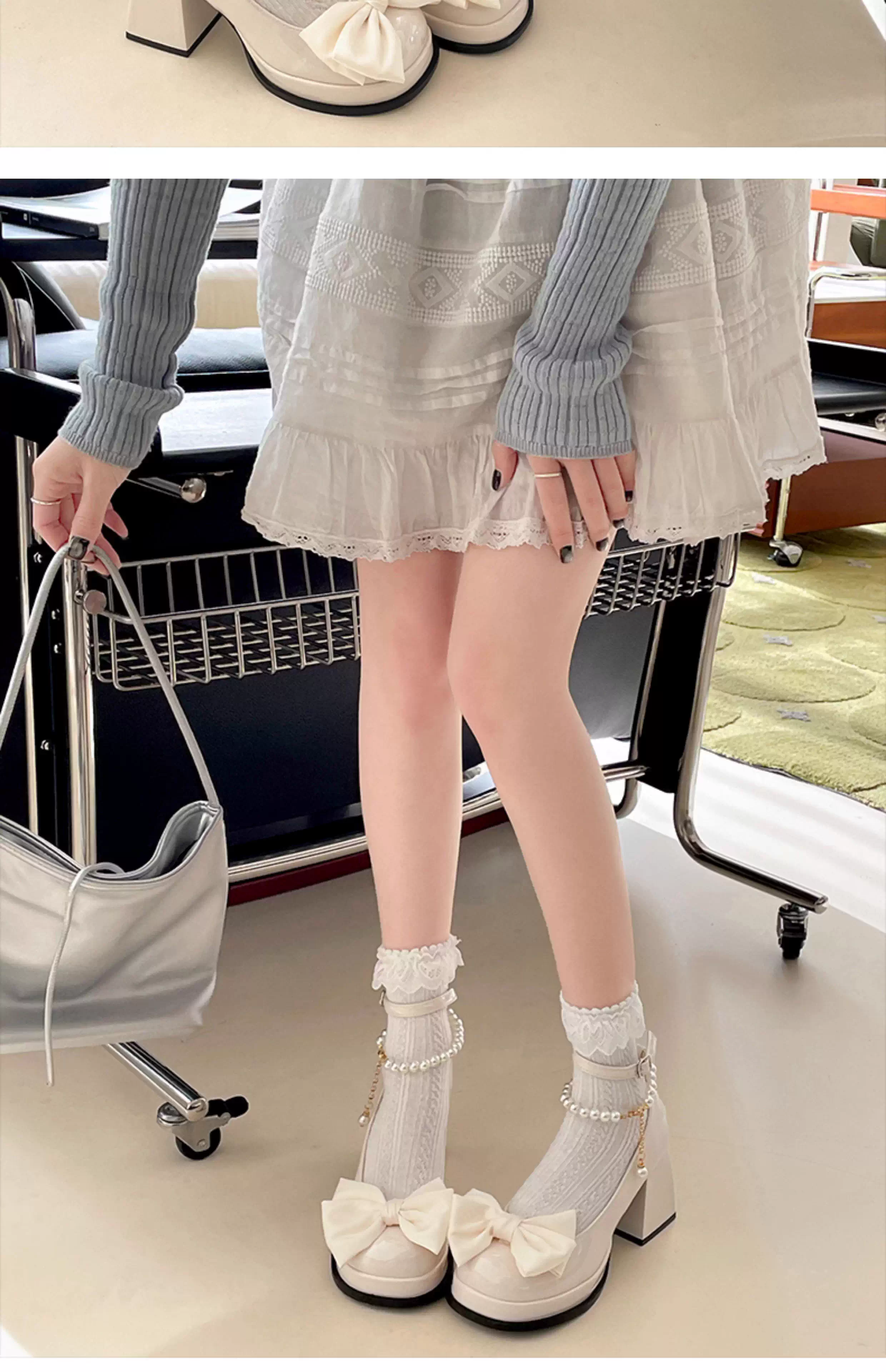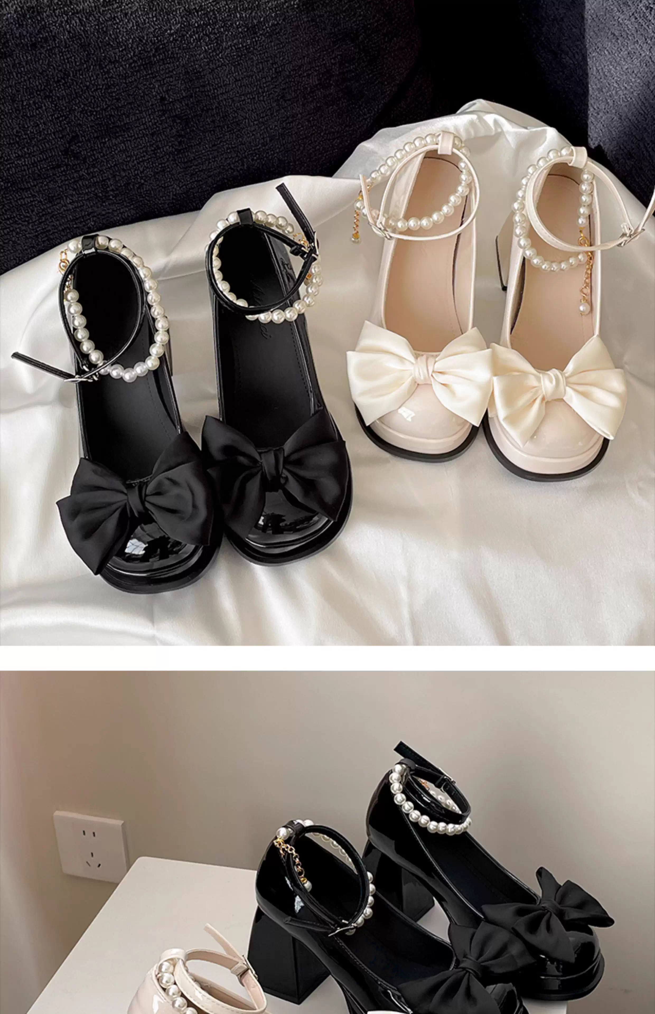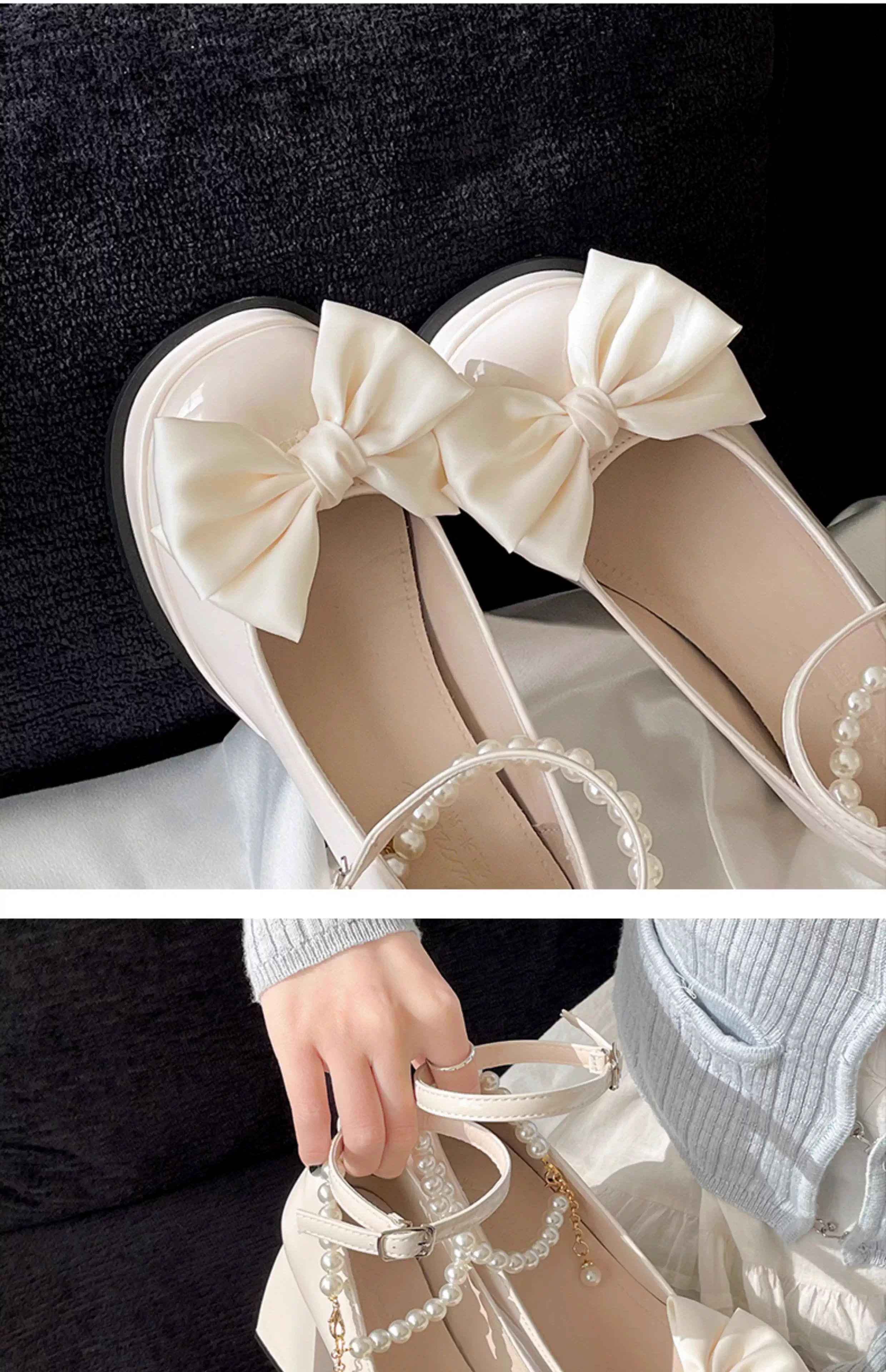 - Giày cao gót nữ đế thô kiểu retro màu trắng, kiểu Mary Jane, chất liệu da, mùa thu mới 2025, kiểu Pháp, mũi nông