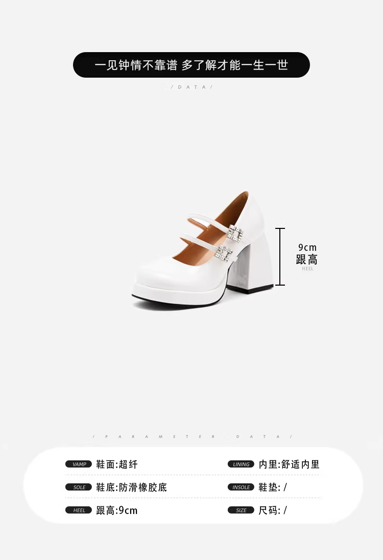 - Giày cao gót Pear Xiaoqi~ White Mary Jane dành cho nữ, giày cưới, giày cô dâu, giày phù dâu, giày cao gót đính đá kiểu Pháp, giày đế thô, giày đơn