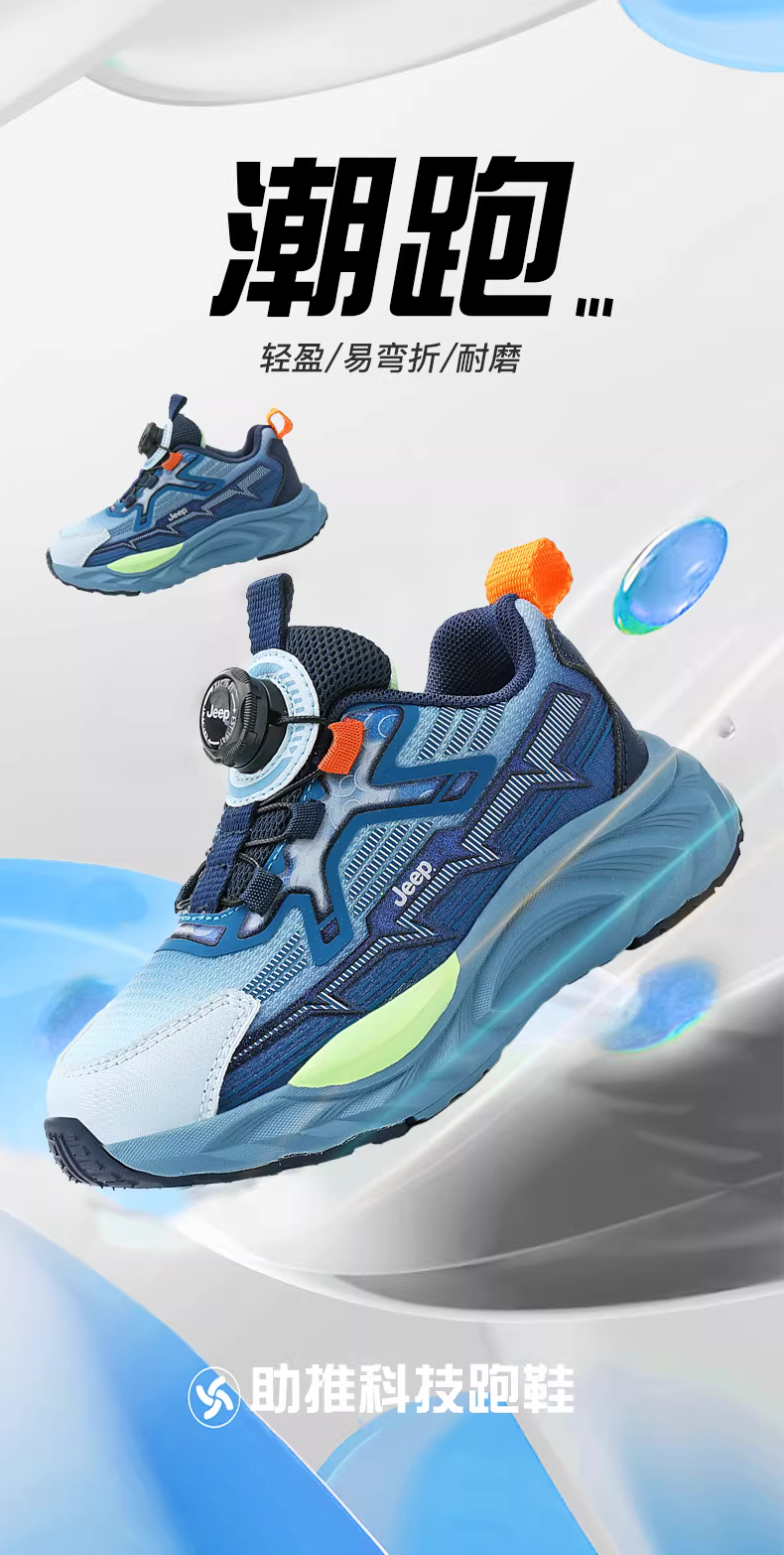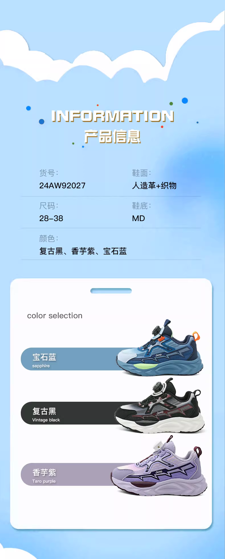 - Giày chạy bộ nhẹ thoáng khí phát sáng cho trẻ em Jeep Giày thể thao đế mềm cho bé gái phong cách xuân thu mới 2024