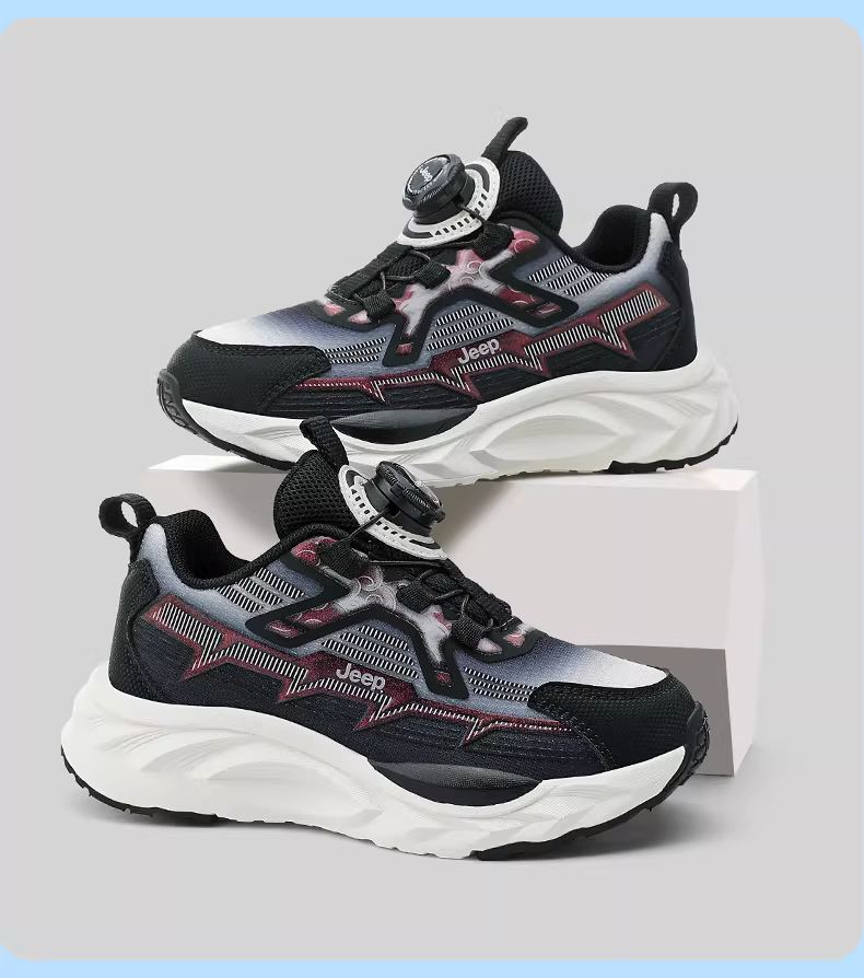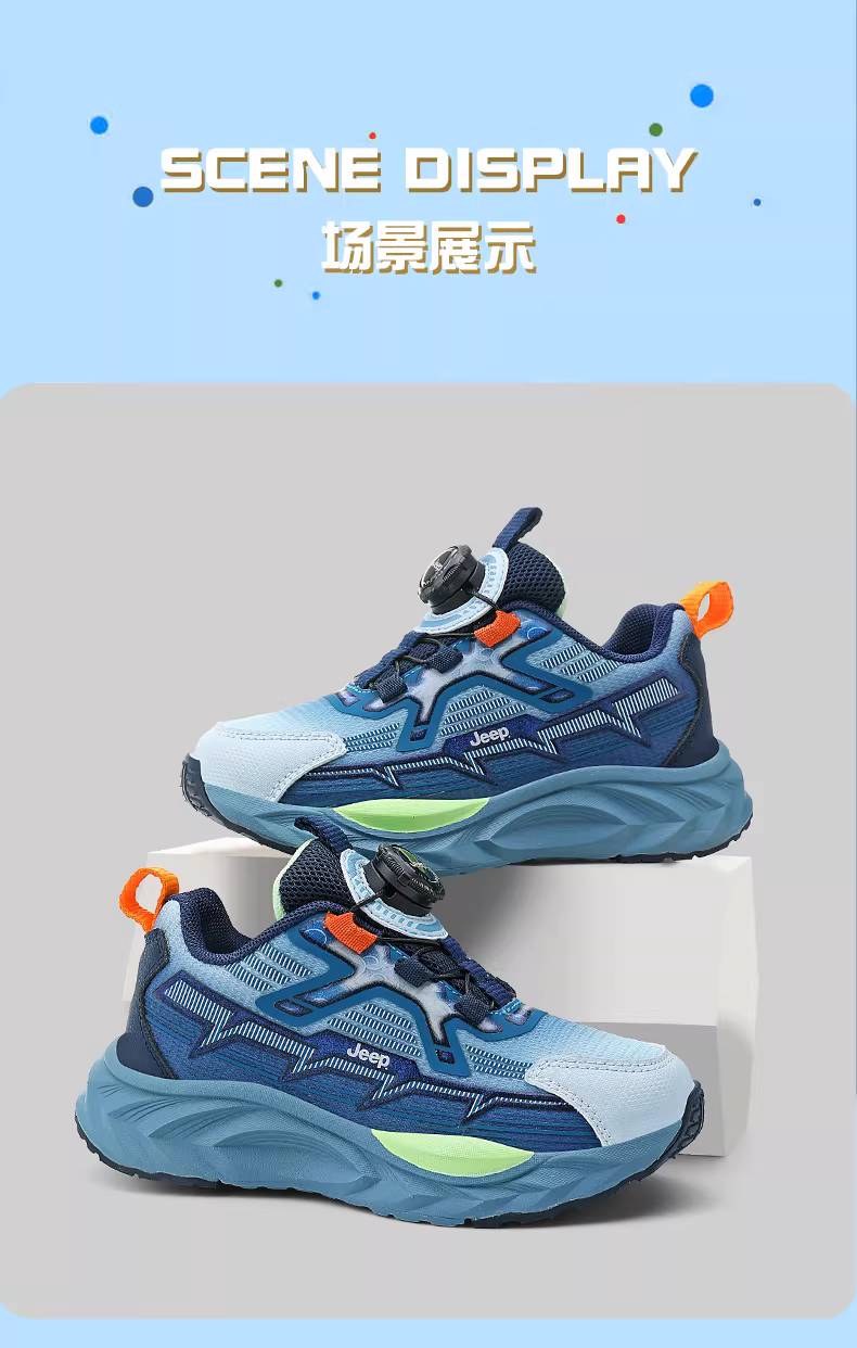 Giày chạy bộ nhẹ thoáng khí phát sáng cho trẻ em Jeep Giày thể thao đế mềm cho bé gái phong cách xuân thu mới 2024