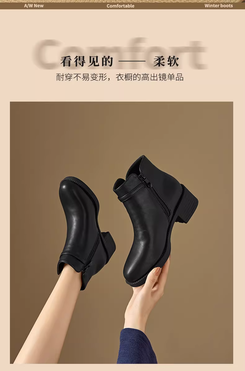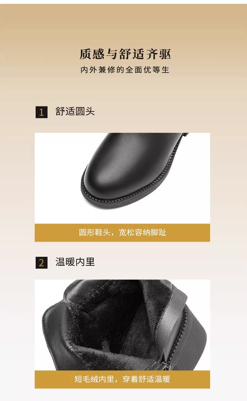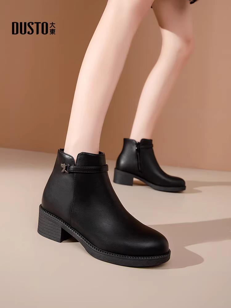 - Giày Chelsea cổ ngắn đế thô mùa thu mới 2025 của mẹ Dadong, màu đen, lót lông, chất liệu da dành cho nữ