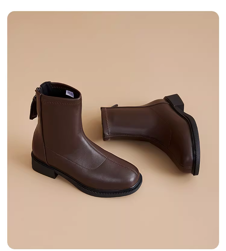Giày Chelsea đen Dadong dành cho nữ 2025, mẫu mới thu đông, kiểu dáng đơn giản, mũi vuông, cổ ngắn, tôn dáng, kiểu Martin.