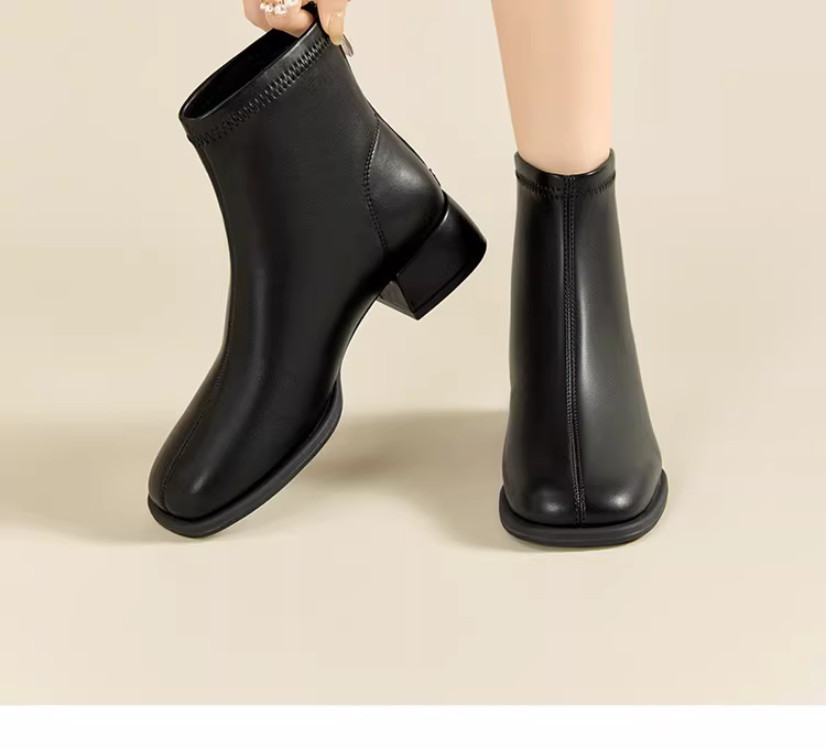 - Giày Chelsea nữ kiểu dáng phương Đông cỡ lớn, mẫu mới Thu Đông 2025, màu đen, đa năng, gót dày, kiểu ngắn, thời trang