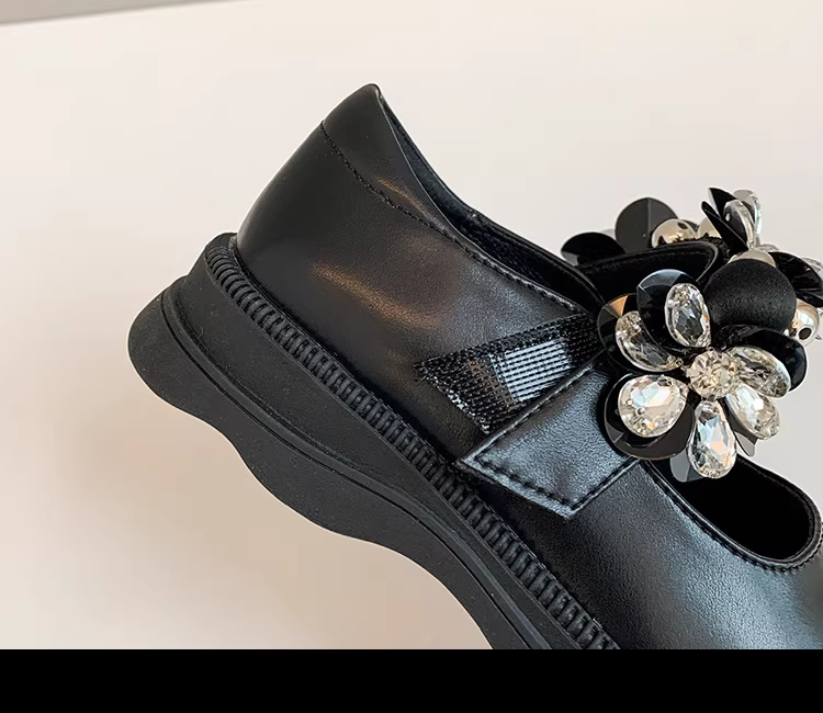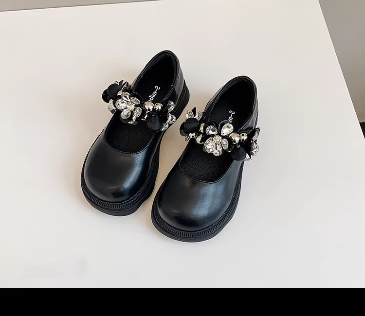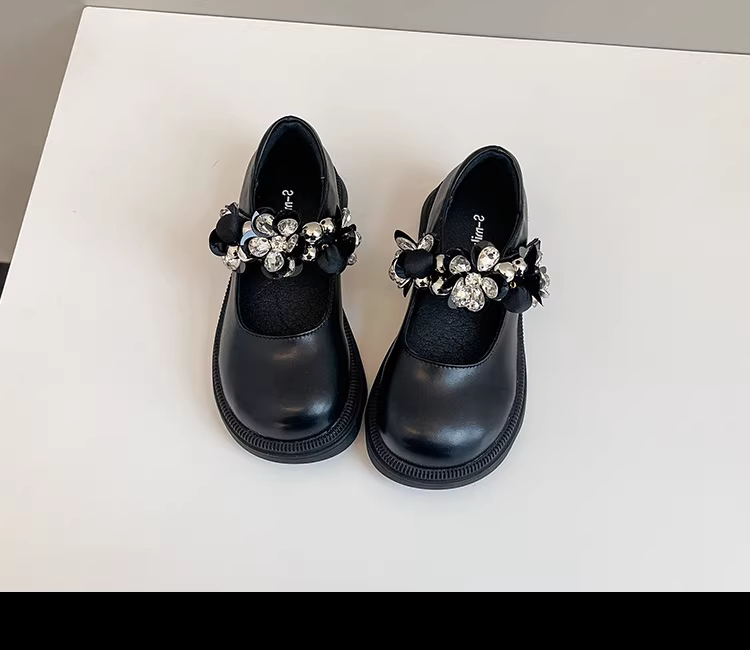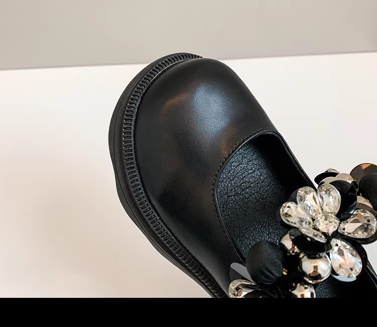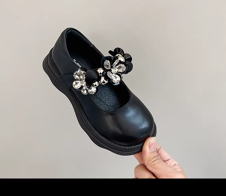 - Giày công chúa bé gái mùa xuân 2025, kiểu dáng tròn, khóa dán, chất liệu da thật, đế dày, mũi vuông, họa tiết hoa, đế mềm