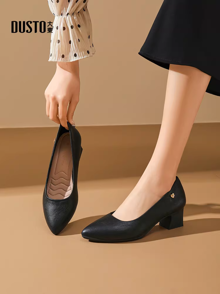 Giày công sở màu đen Dadong dành cho nữ, đế mềm, thoải mái khi đứng nhiều giờ, không làm mỏi chân, giày đơn, gót dày, giày cao gót, giày đi làm dành cho nữ.