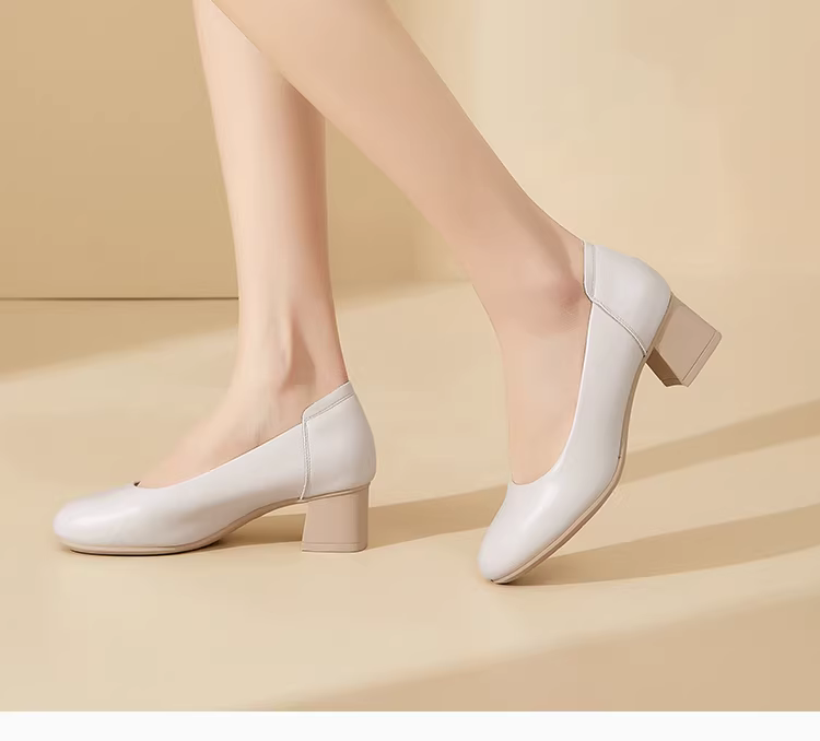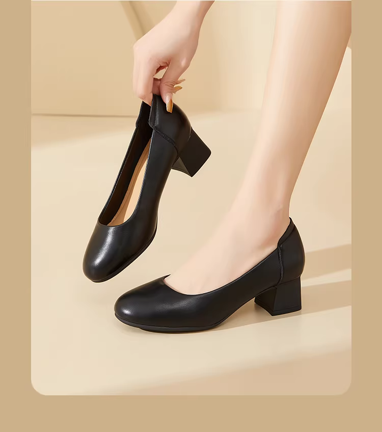 - Giày công sở nữ thoải mái khi đứng lâu, giày cao gót đế thô màu đen mùa thu mới 2025, giày cao gót đi làm nữ.