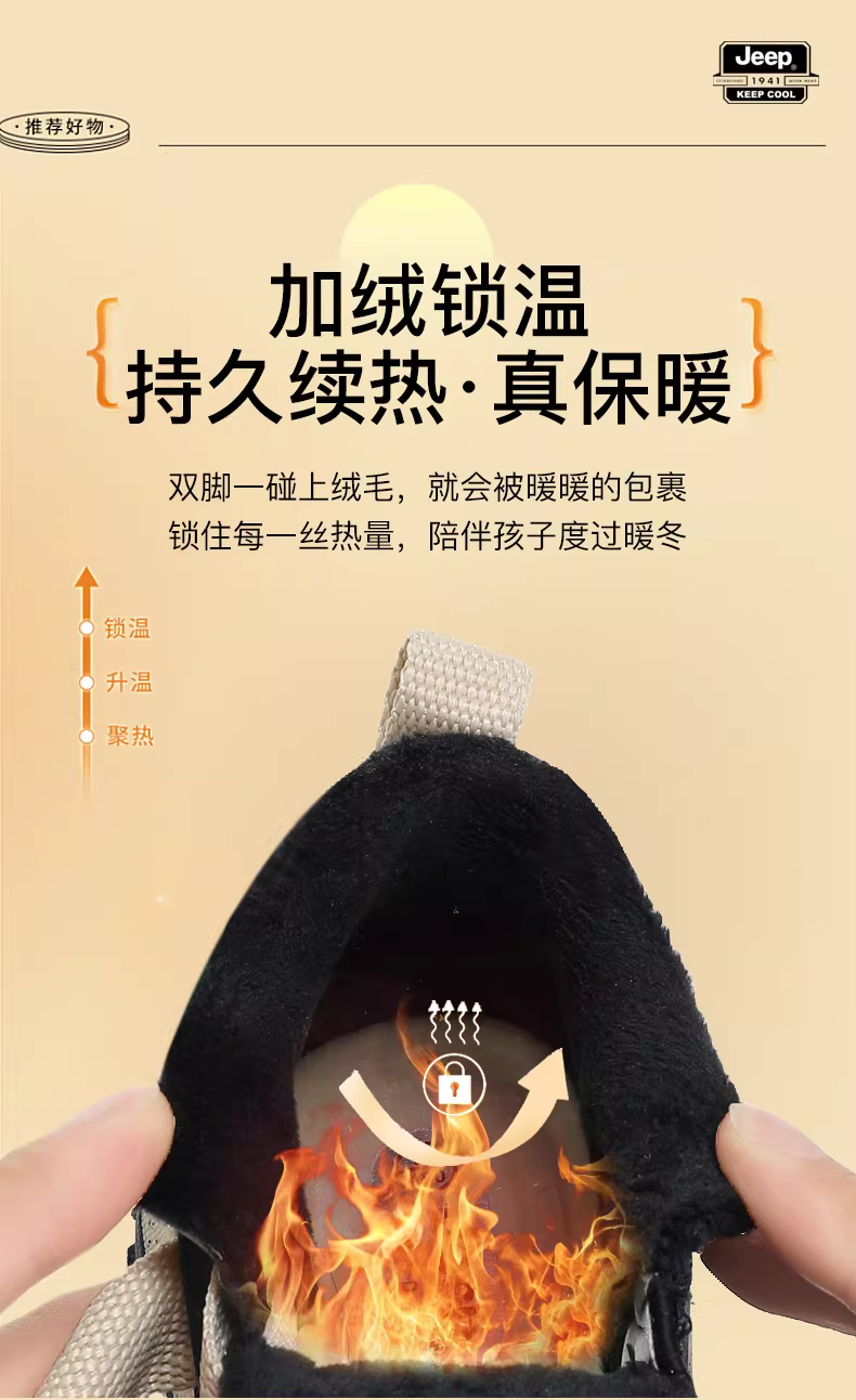 - Giày cotton ấm áp lót lông cừu dành cho trẻ em Jeep Giày đi bộ đường dài ngoài trời mùa đông dành cho bé trai và bé gái, giày chạy bộ thông thường phong cách Trung Quốc thời trang