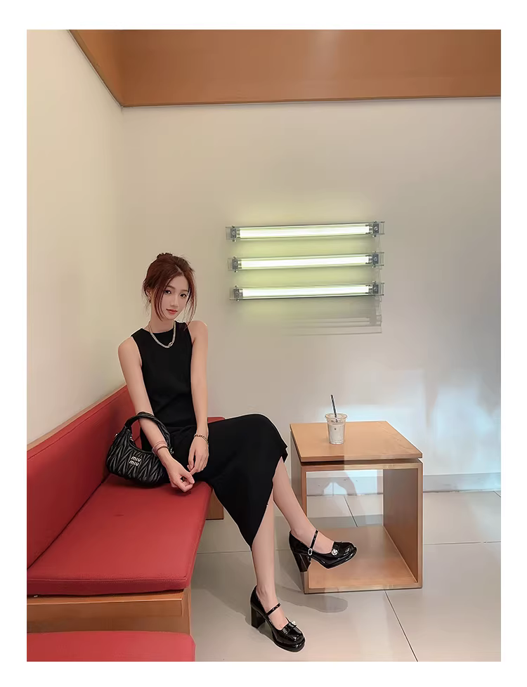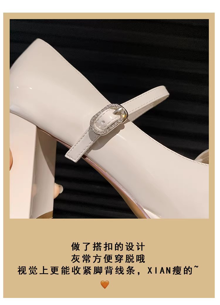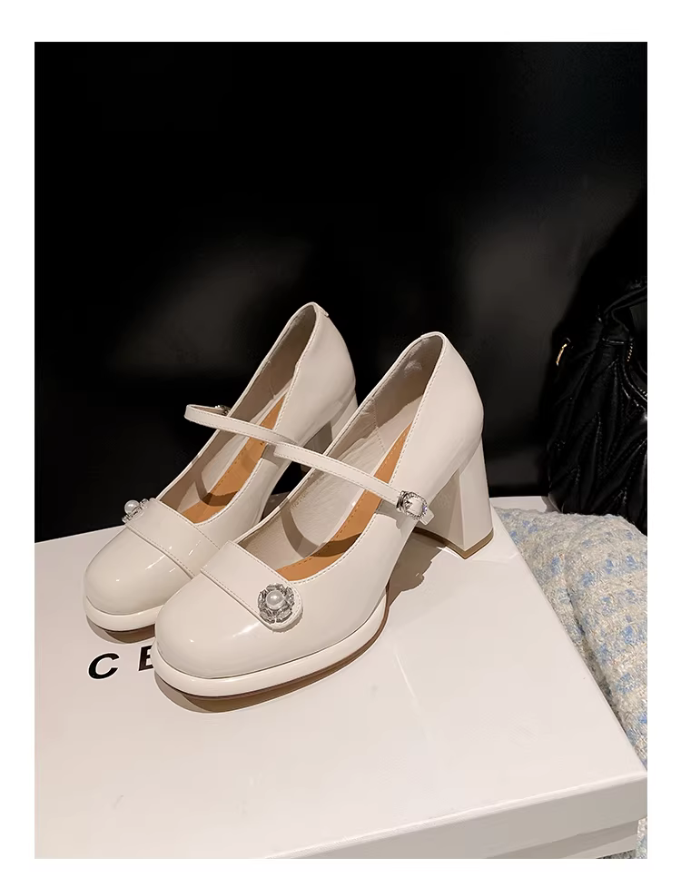 - Giày cưới cao gót nữ Pear Xiaoqi~ Thu đông 2025 kiểu Pháp mới, gót thô, giày đơn giản đính đá sang trọng kiểu Mary Jane