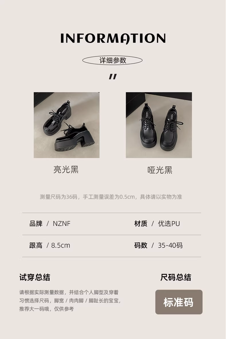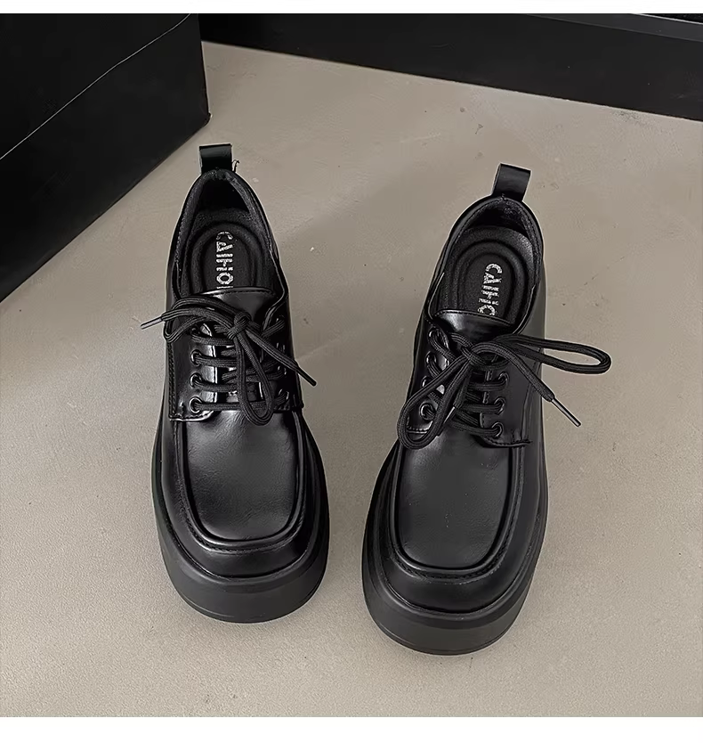 - Giày da cao gót chunky kiểu Anh cổ điển màu đen dành cho nữ, mẫu mới thu 2025, tăng chiều cao, kiểu buộc dây, dành cho người thấp.