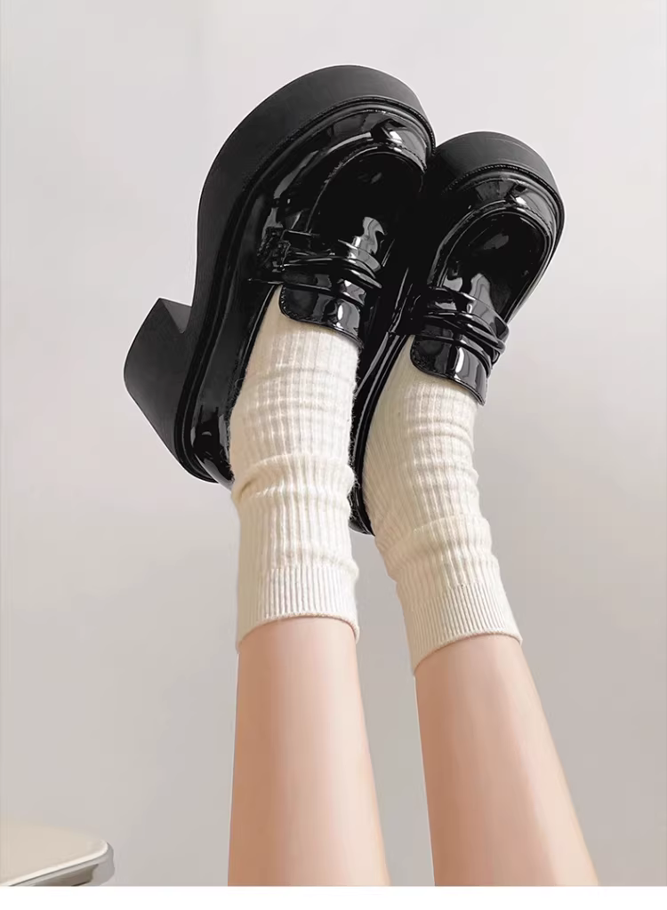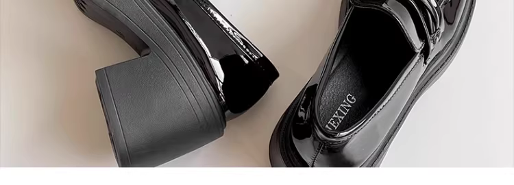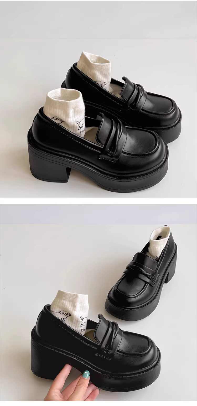 Giày da cao gót kiểu Anh, đế dày, tăng chiều cao, màu đen dành cho nữ, kiểu dáng mới mùa thu 2025, kiểu Pháp, dễ mang.