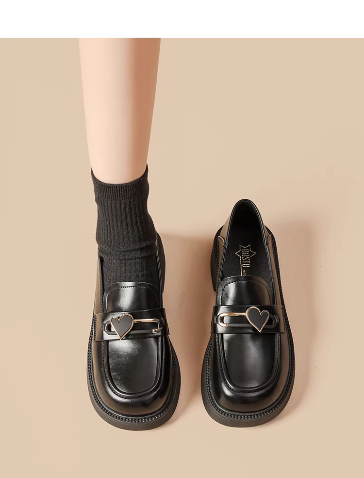 Giày da đa năng Dadong dành cho nữ 2025, kiểu dáng mới thu đông, phong cách sinh viên, giày đơn đế dày, đế mềm, mũi tròn, kiểu lười.