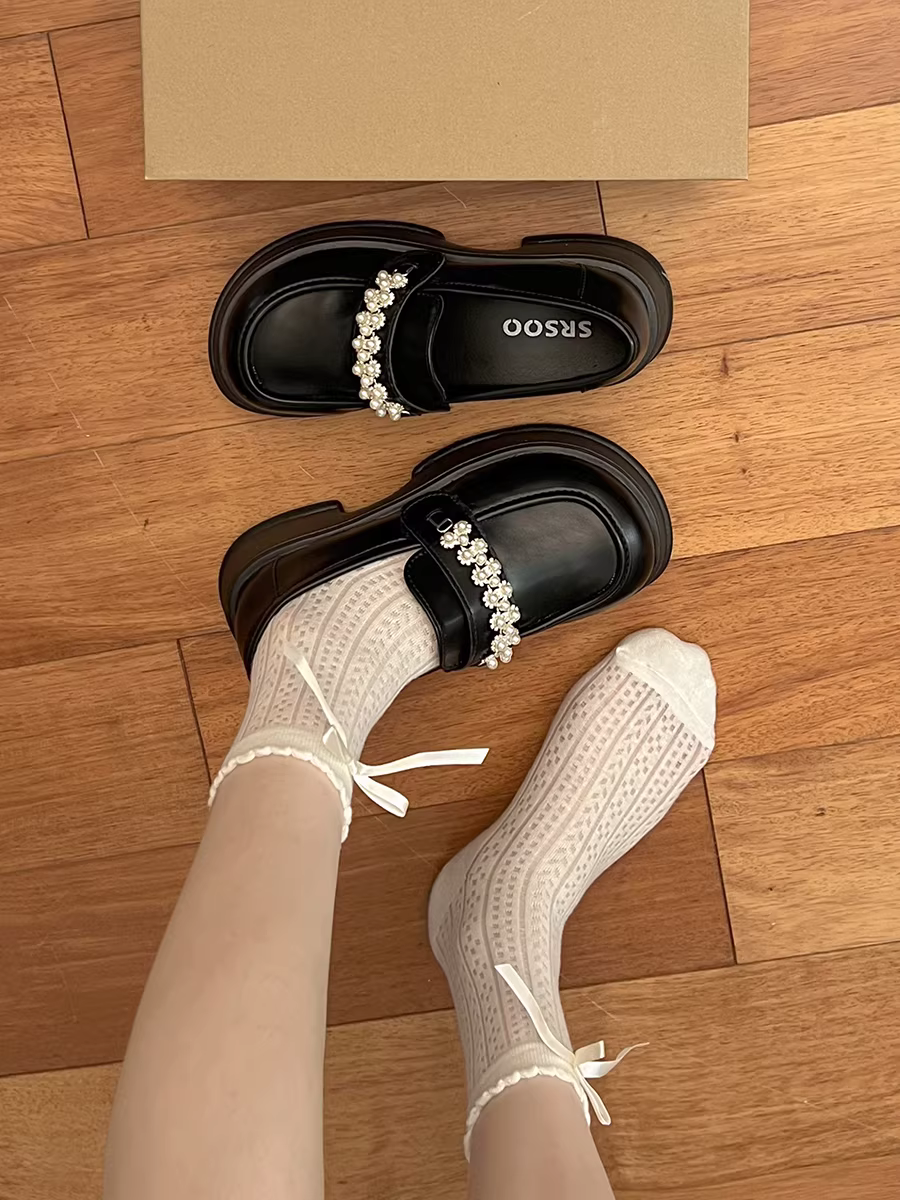 - Giày da đế dày kiểu Anh cổ điển màu đen dành cho nữ, mẫu mới mùa thu 2025, kiểu lười đi dễ dàng.