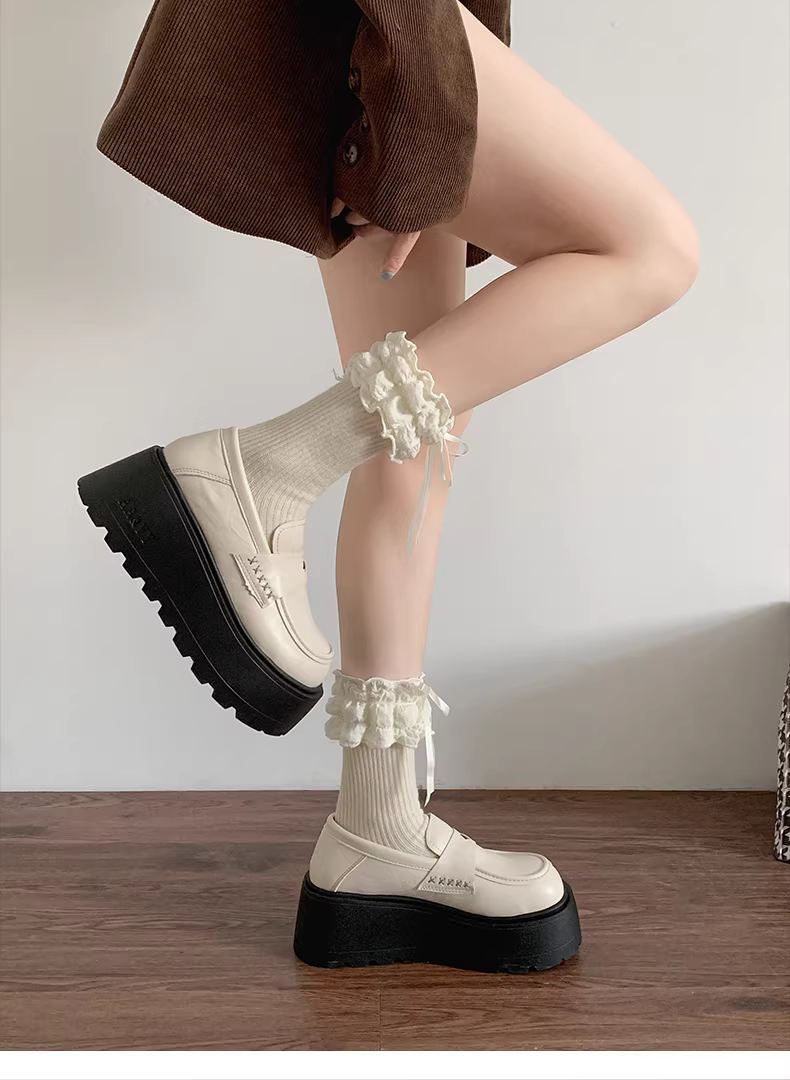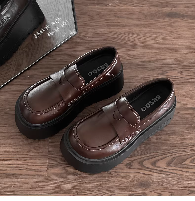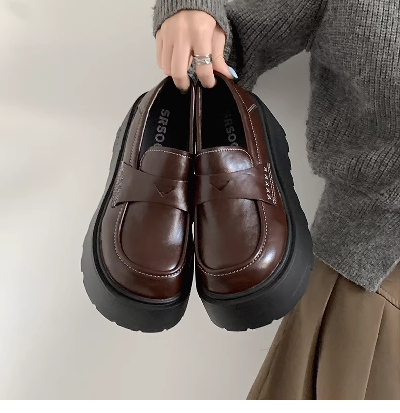 Giày da đế dày kiểu Anh cổ điển màu đen dành cho nữ, mẫu mới thu 2025, kiểu lười dễ phối chân váy
