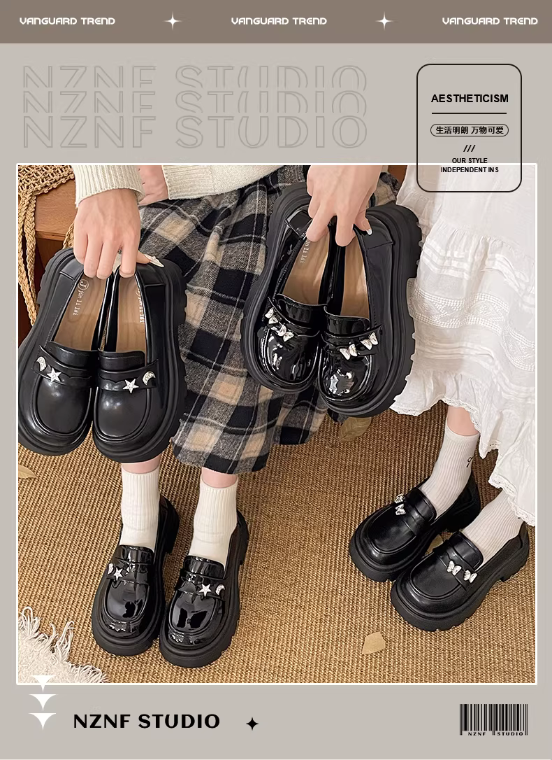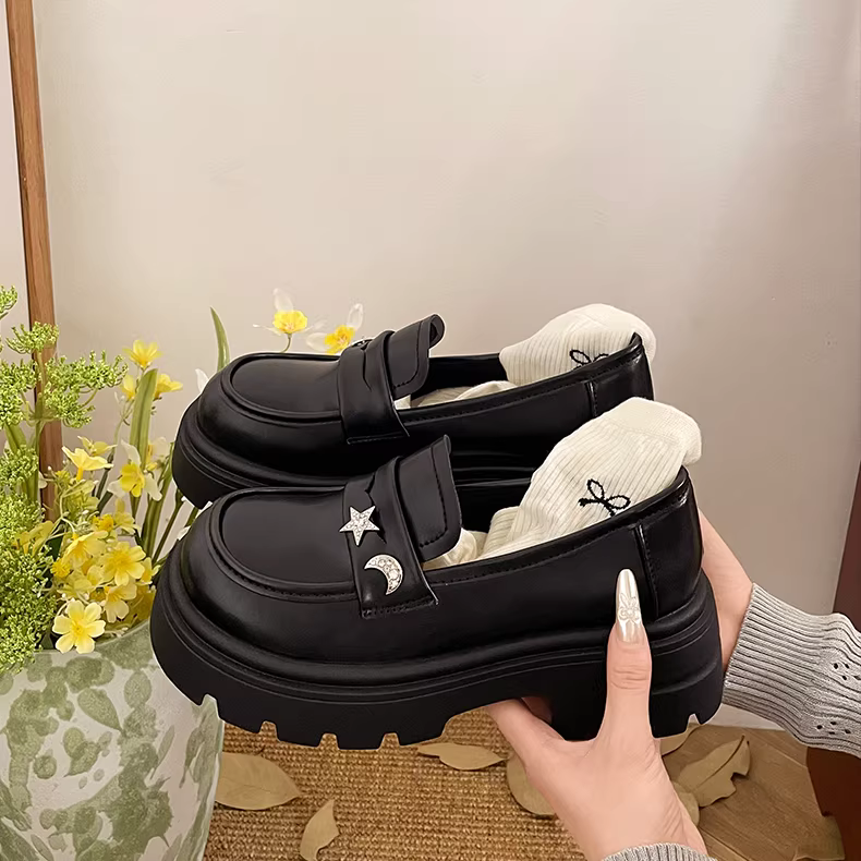 - Giày da đế dày kiểu Anh cổ điển màu đen dành cho nữ, mẫu mới thu đông 2025, kiểu Pháp đa năng, kiểu lười