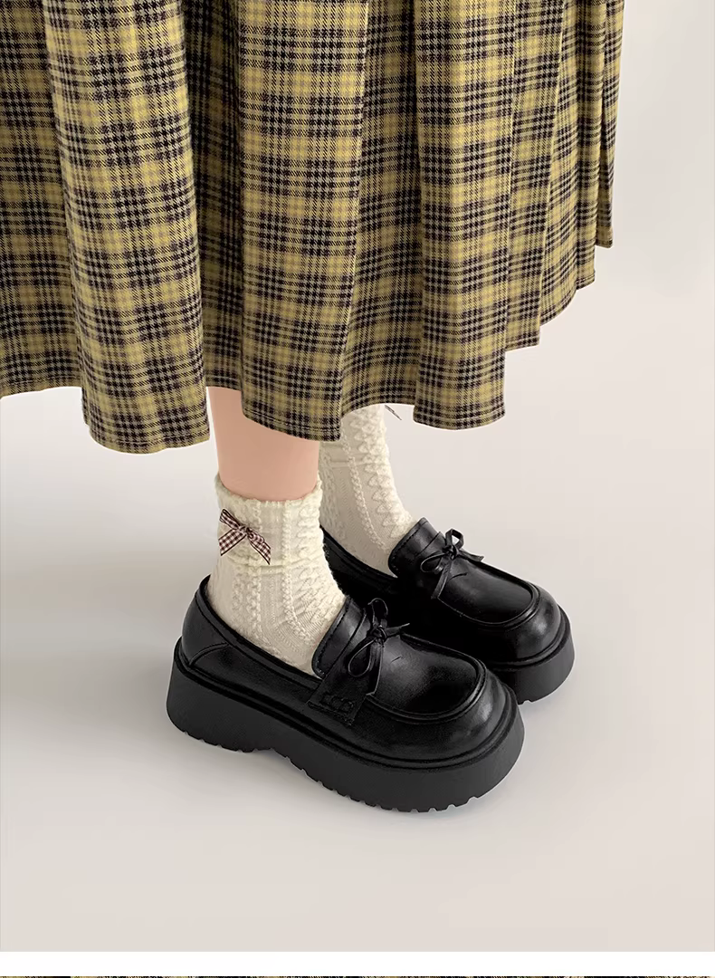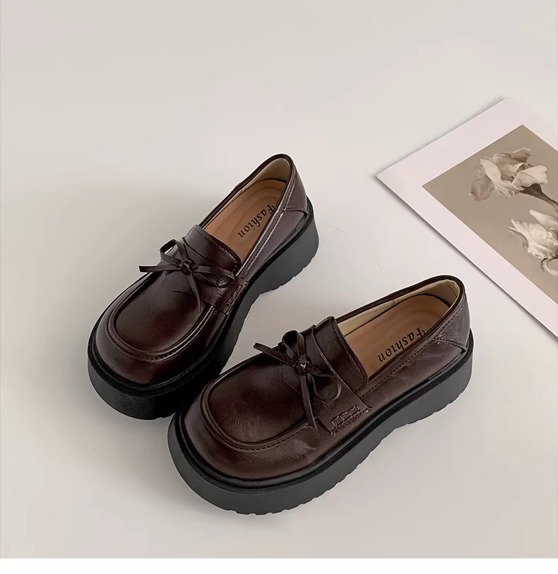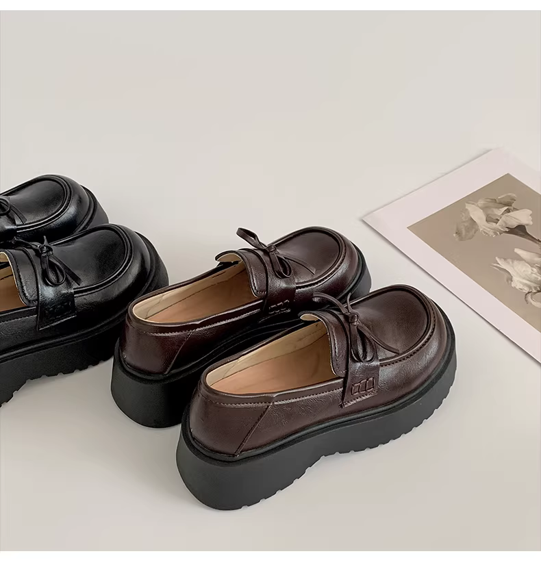 - Giày da đế dày kiểu Anh cổ điển màu đen nhỏ gọn dành cho nữ, mẫu mới thu đông 2025, đa năng, tăng chiều cao