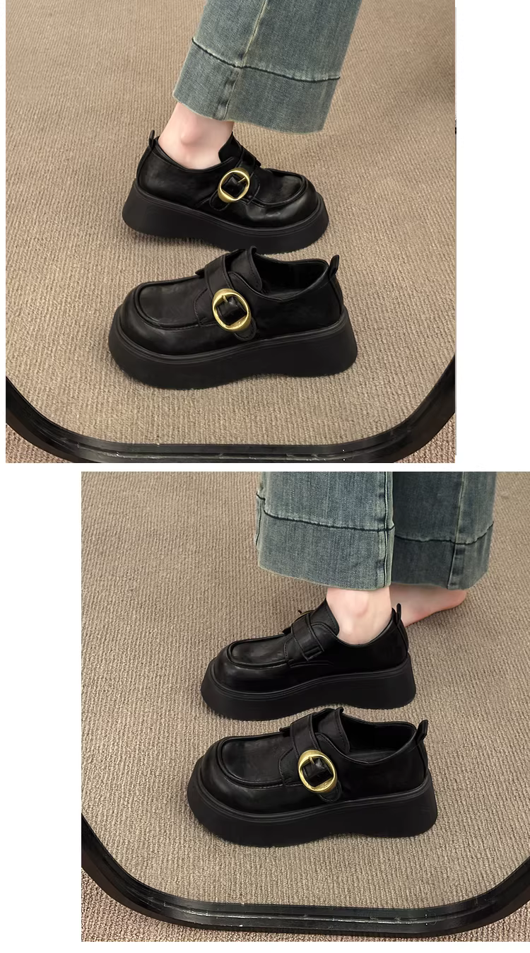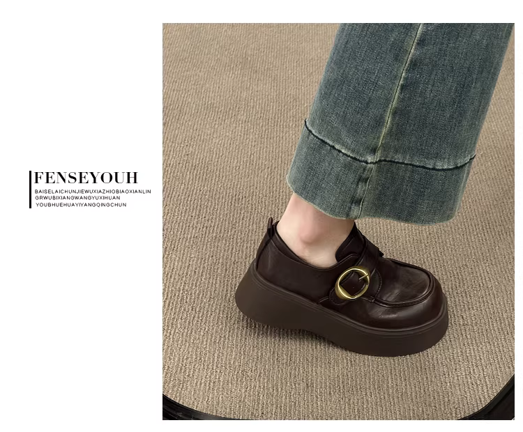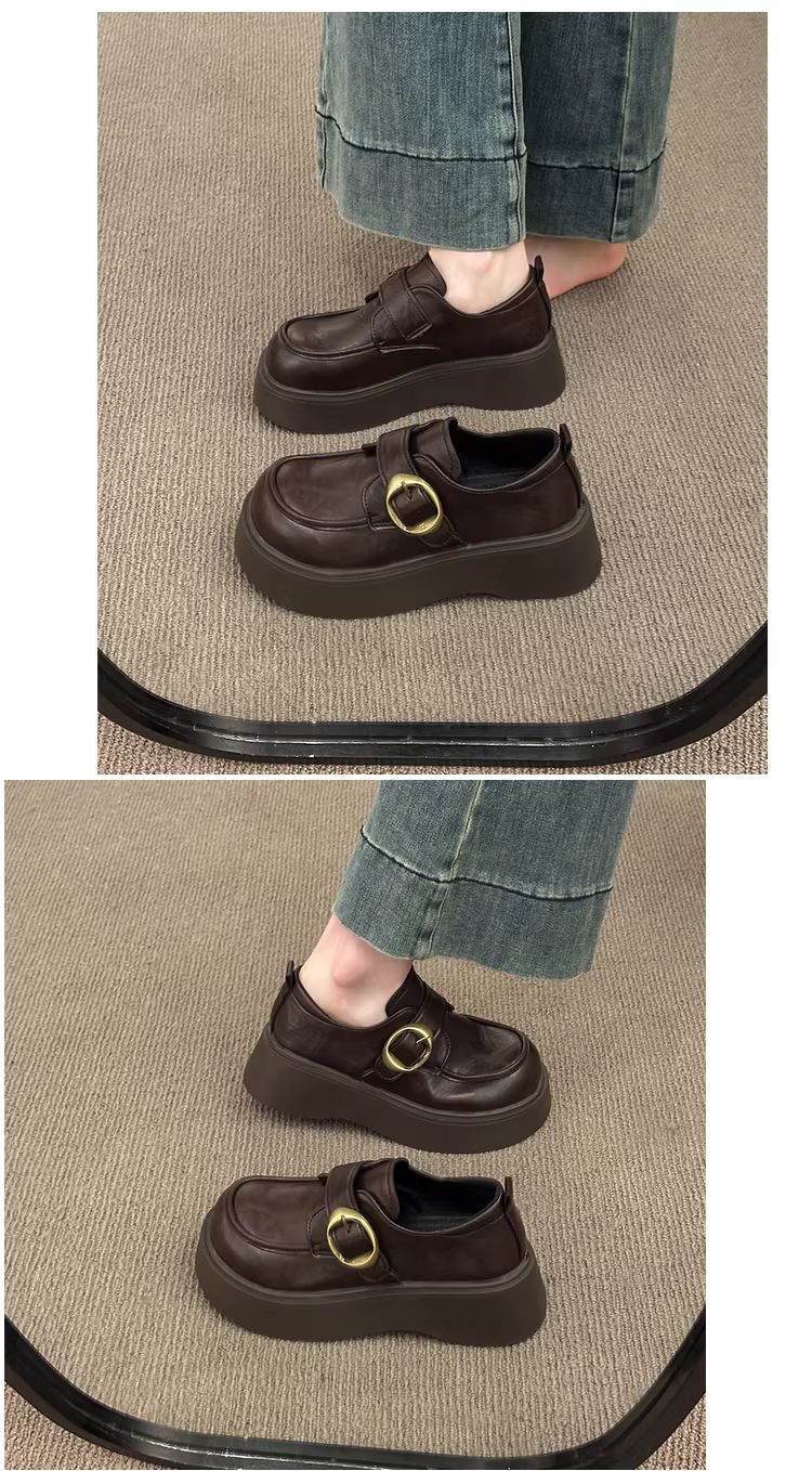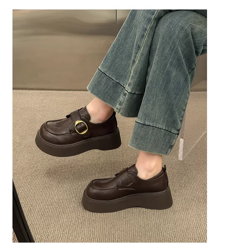 - Giày da đế dày kiểu Anh cổ điển màu nâu dành cho nữ, kiểu thu đông mới 2025, giày lười đế mềm tăng chiều cao dành cho phụ nữ nhỏ nhắn.