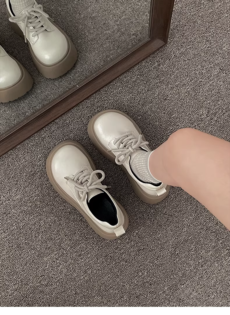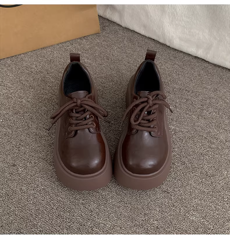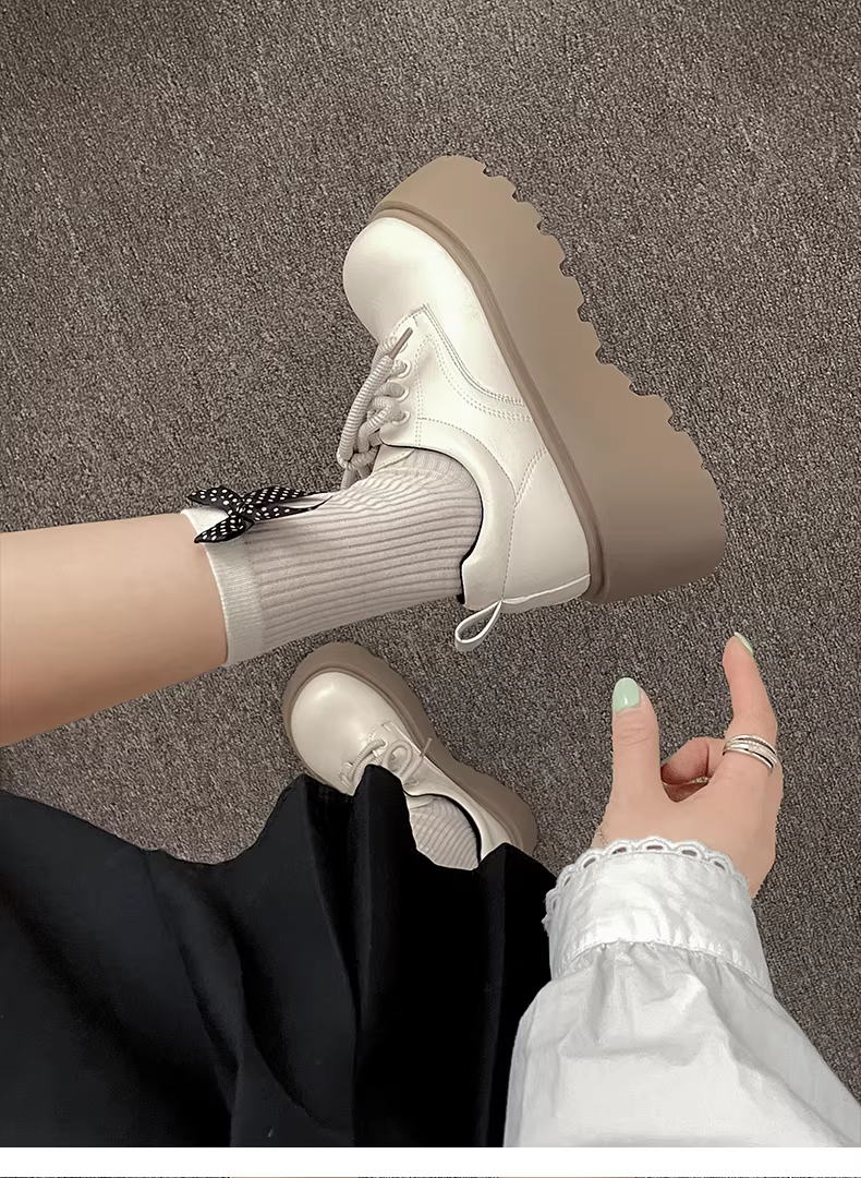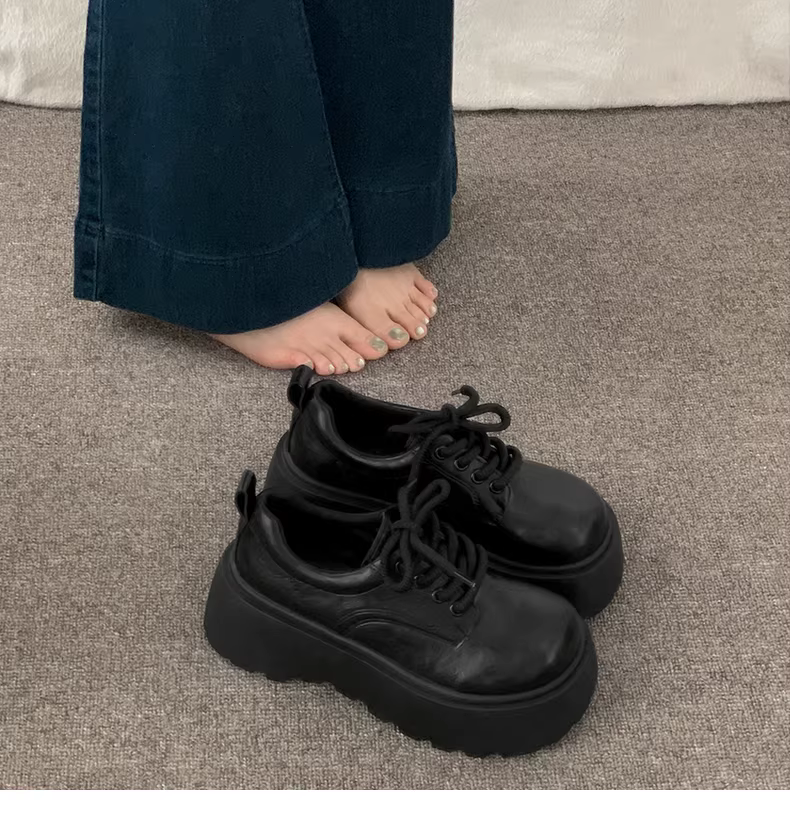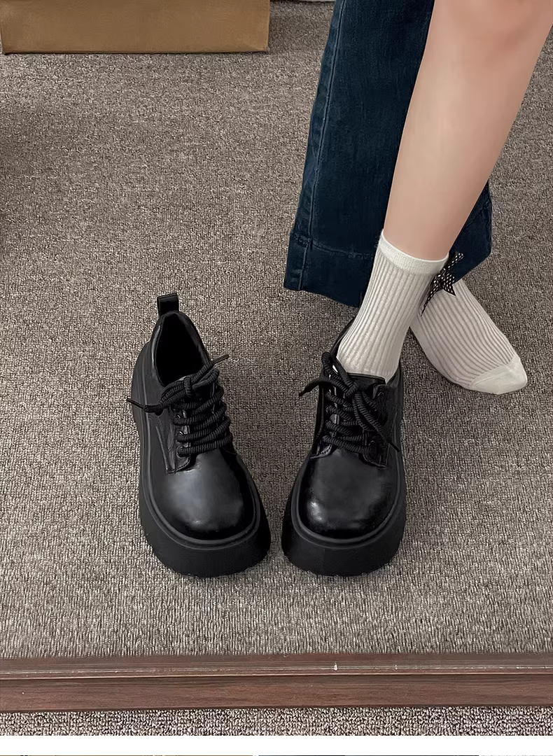 - Giày da đế dày kiểu Anh đen dành cho nữ, mẫu mới thu đông 2025, đa năng phối chân váy, giày Mary Jane mũi tròn tăng chiều cao.