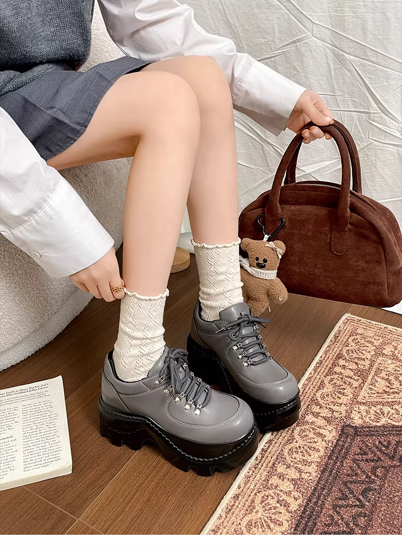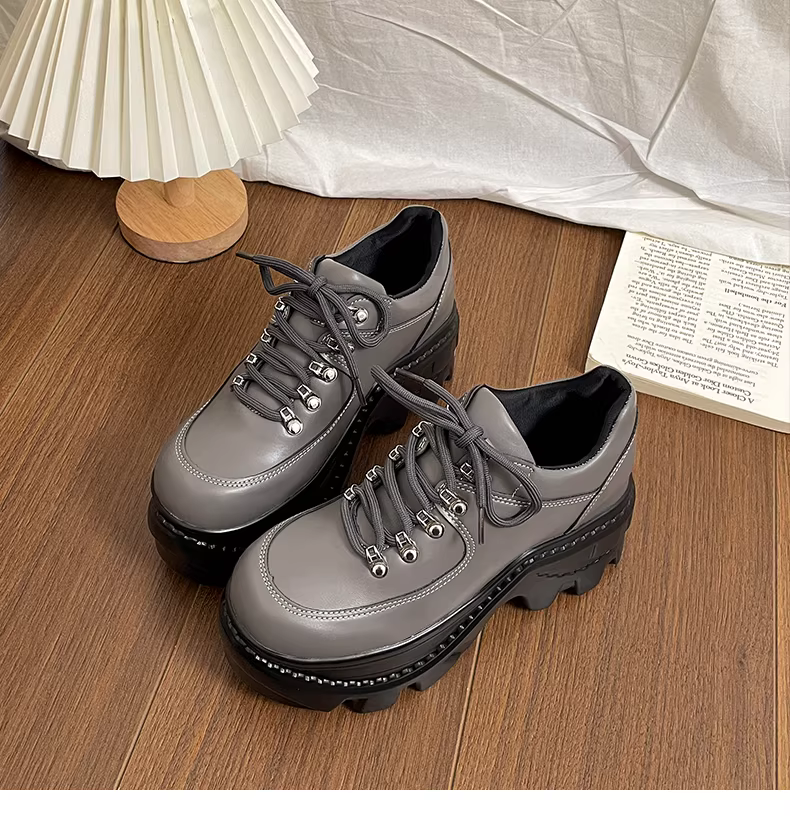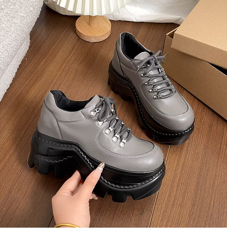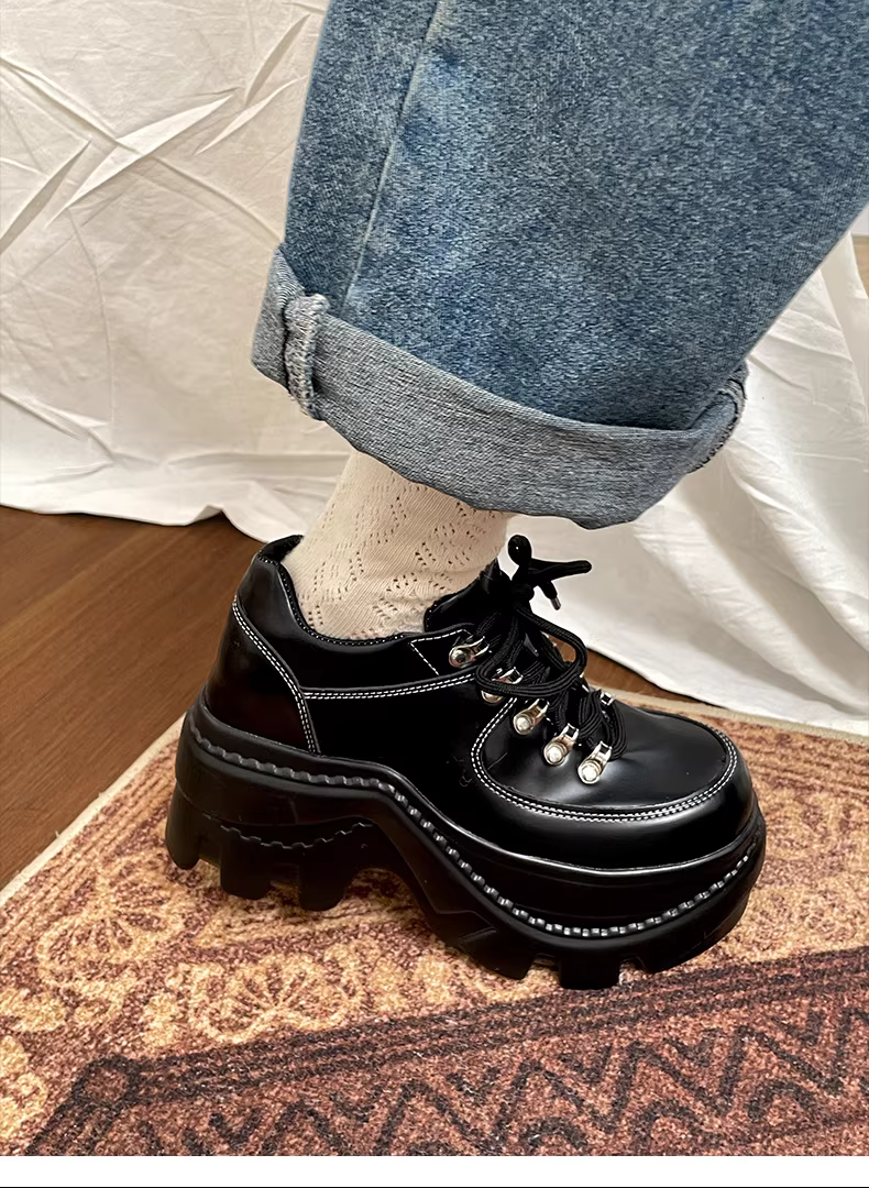 - Giày da đế dày kiểu Anh đen dành cho nữ, mẫu xuân thu mới 2025, giày lười tăng chiều cao cho người nhỏ nhắn.