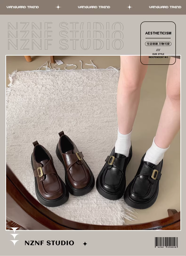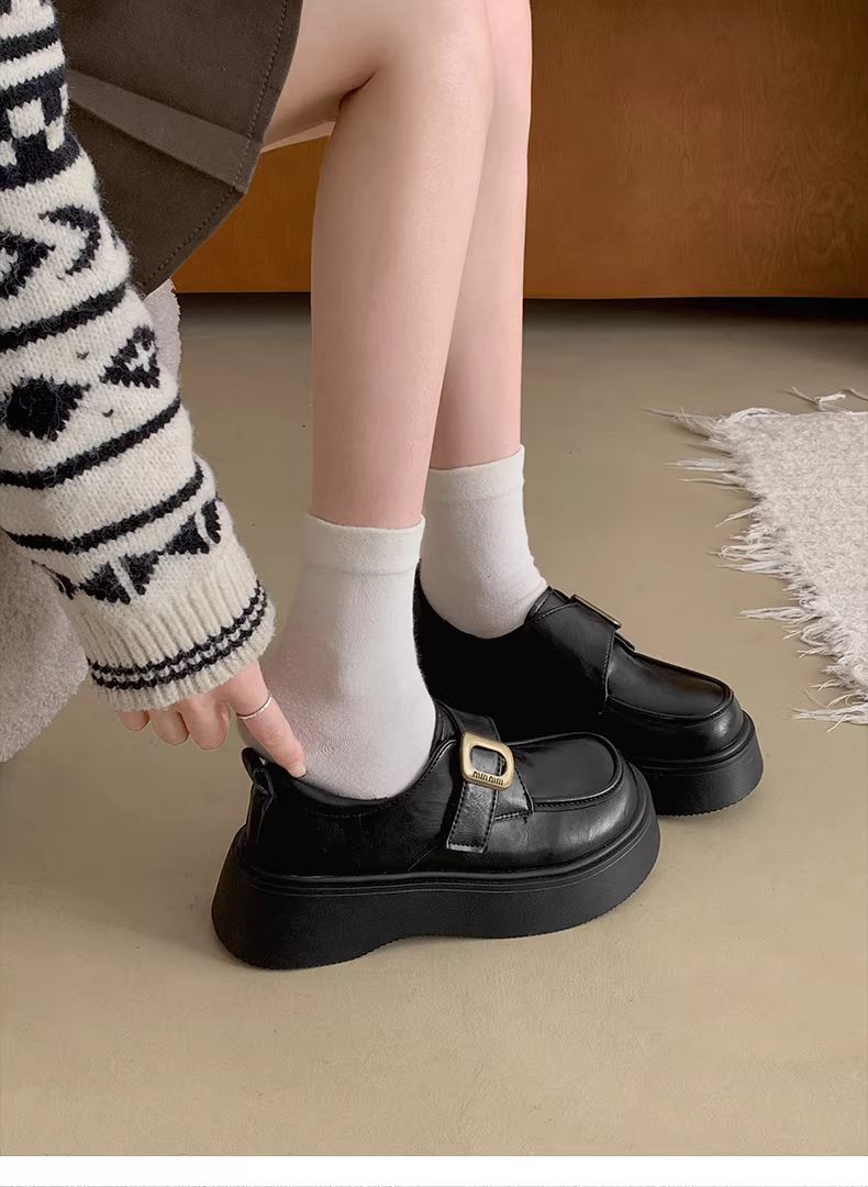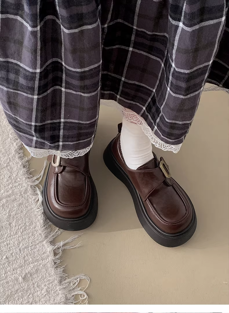 - Giày da đế dày kiểu Anh màu nâu dành cho nữ, mẫu mới thu 2025, kiểu Mary Jane đa năng, dễ phối với chân váy