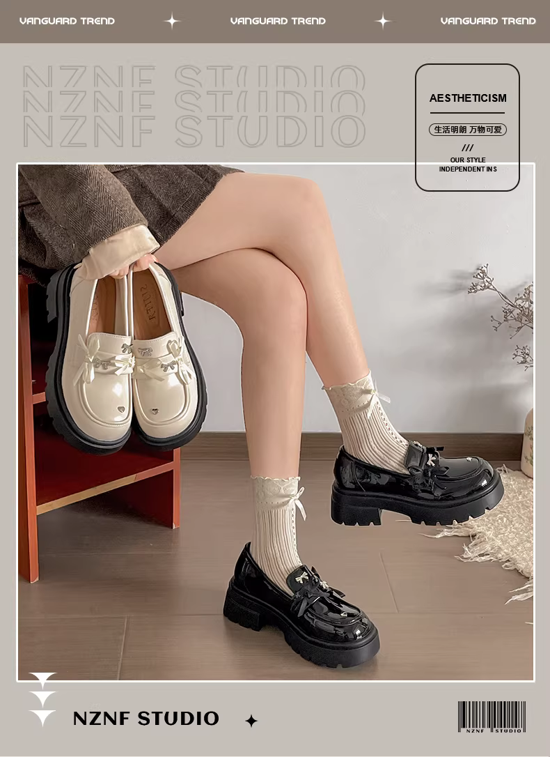 - Giày da đế dày kiểu JK cổ điển màu trắng đa năng dành cho nữ, mẫu mới xuân thu 2025, tăng chiều cao, kiểu lười dành cho người thấp nhỏ