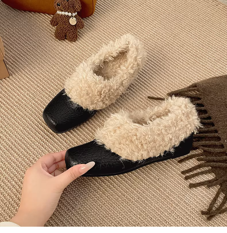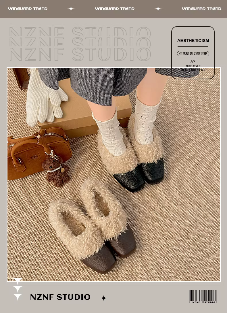 - Giày da đế dày kiểu retro màu nâu dành cho nữ, mẫu mới 2025, giày lông giữ ấm tăng chiều cao mùa đông.