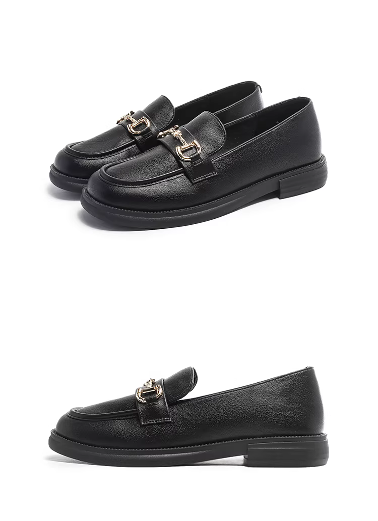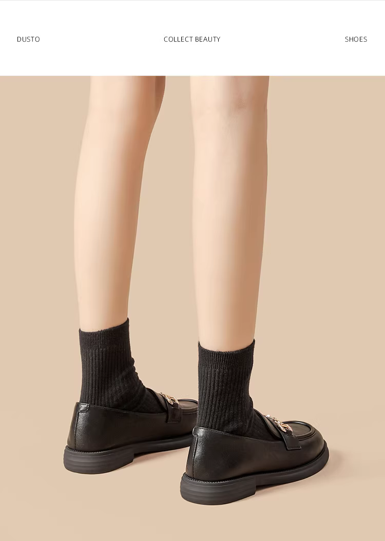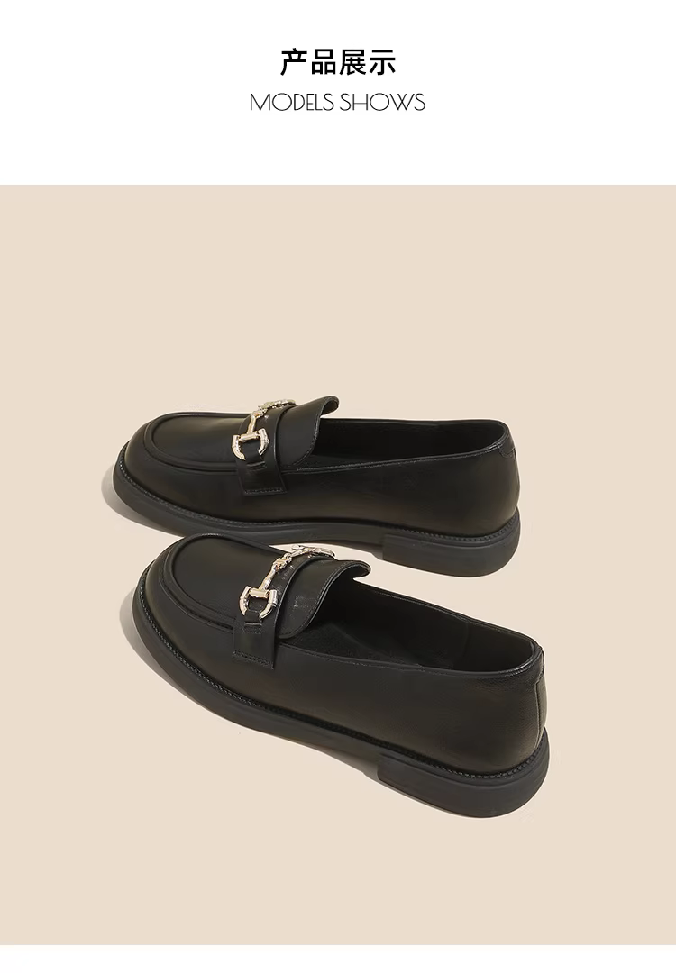 - Giày da đế dày màu trắng Dadong dành cho nữ 2025 mới thu đông đế mềm giày đơn phong cách Hepburn Pháp giày lười nữ