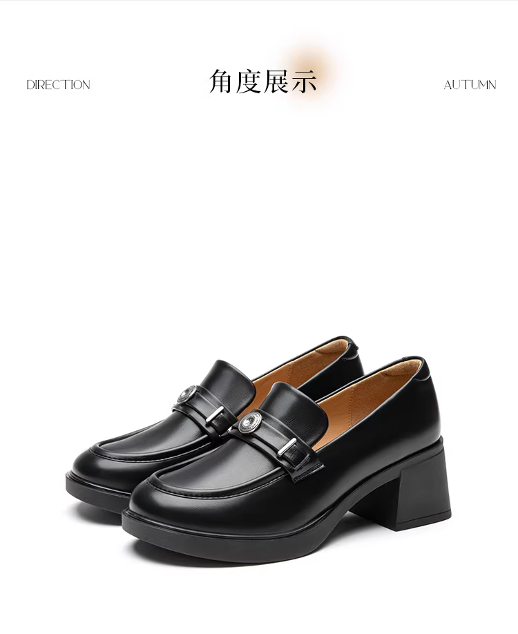 - Giày da đen Dadong nữ mùa thu đông 2025 kiểu mới, giày nữ phong cách Anh, giày lười gót cao chunky, giày đi làm
