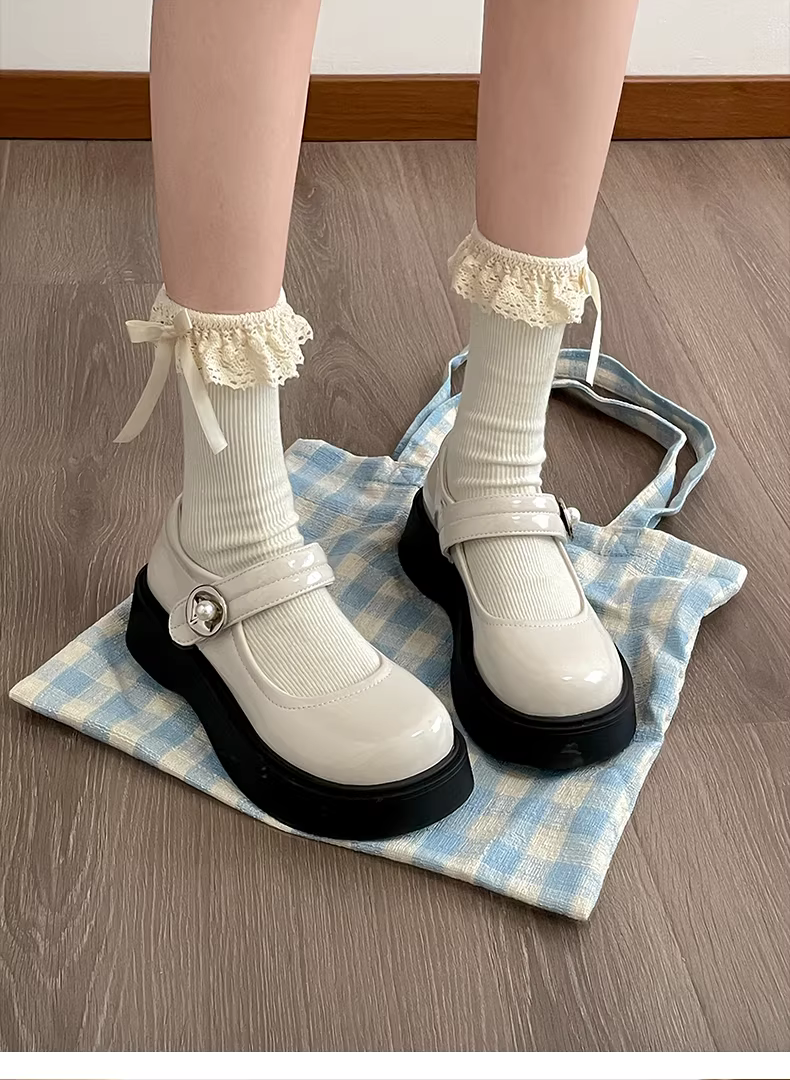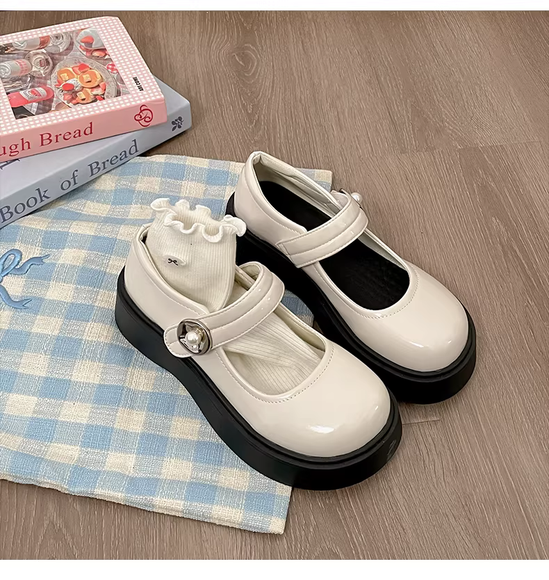 - Giày da nhỏ kiểu Anh cổ điển dành cho nữ, mẫu mới thu 2025, đa năng, kiểu Mary Jane đế thấp, phối chân váy