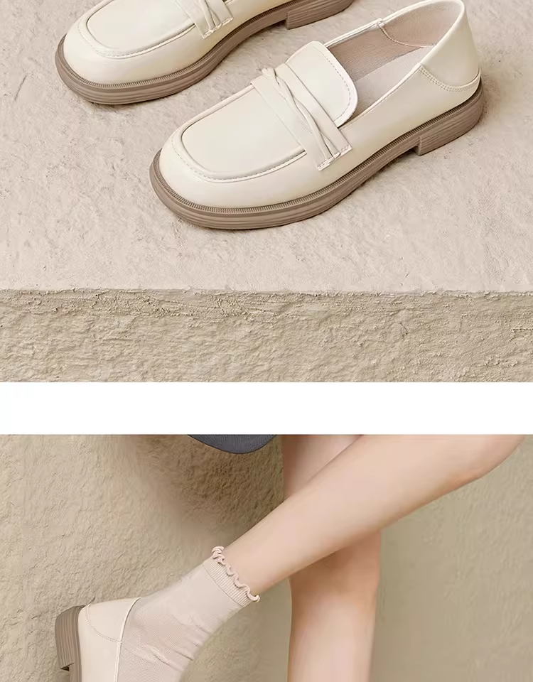 - Giày da nhỏ kiểu Anh Dadong dành cho nữ 2025, mẫu mới mùa thu, đế mềm, kiểu lười, màu đen, mũi tròn, đế bằng, thích hợp đi làm