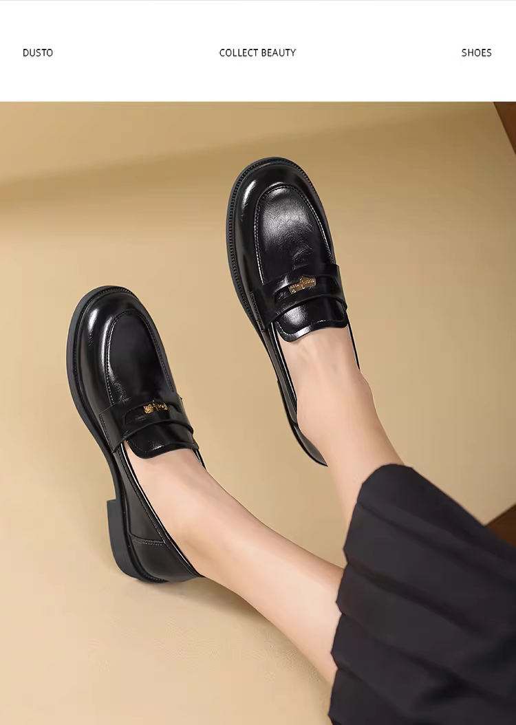 - Giày da nữ Dadong Brown phong cách retro Anh quốc 2025, kiểu dáng mới thu/đông, giày bệt họa tiết hoa trà