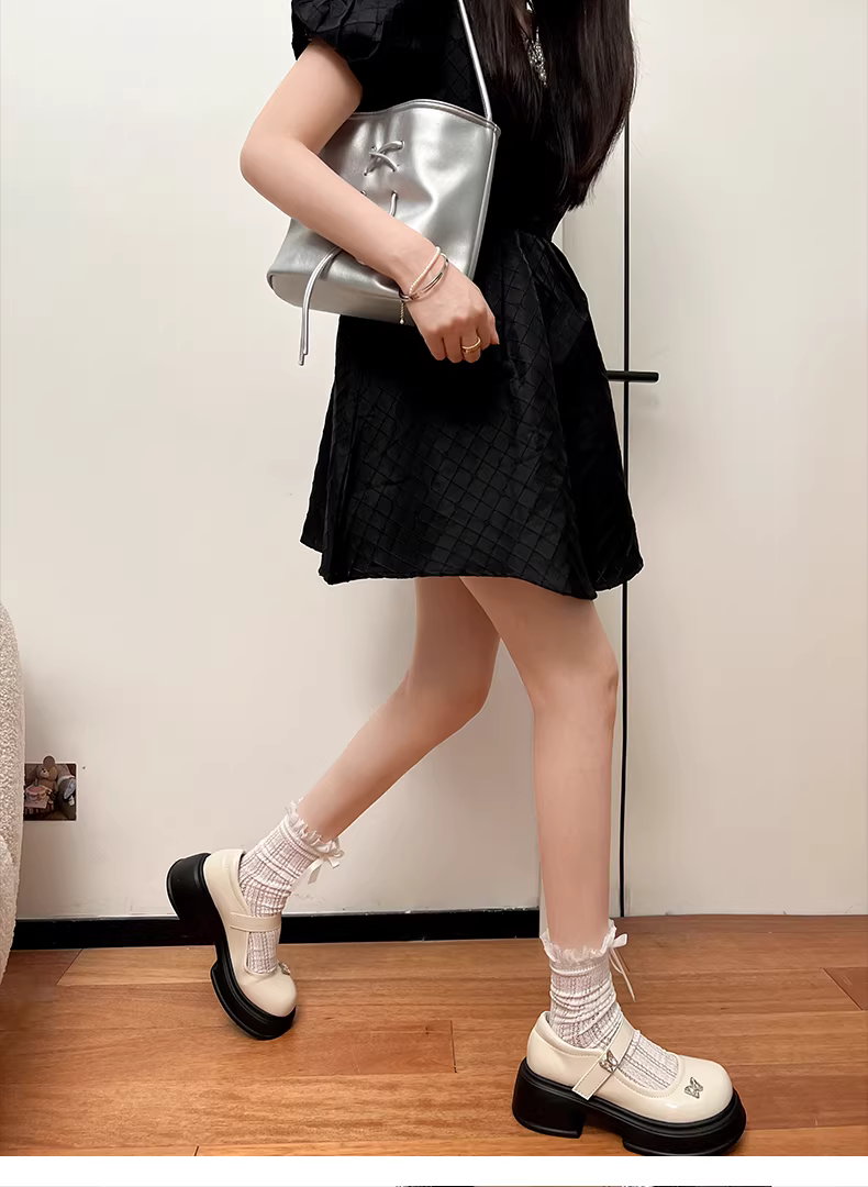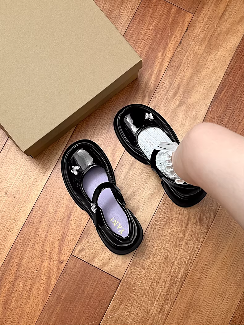- Giày da nữ đế dày đa năng kiểu retro đen, phong cách thu mới 2025, phối chân váy, kiểu Mary Jane Pháp, giày thấp cổ.