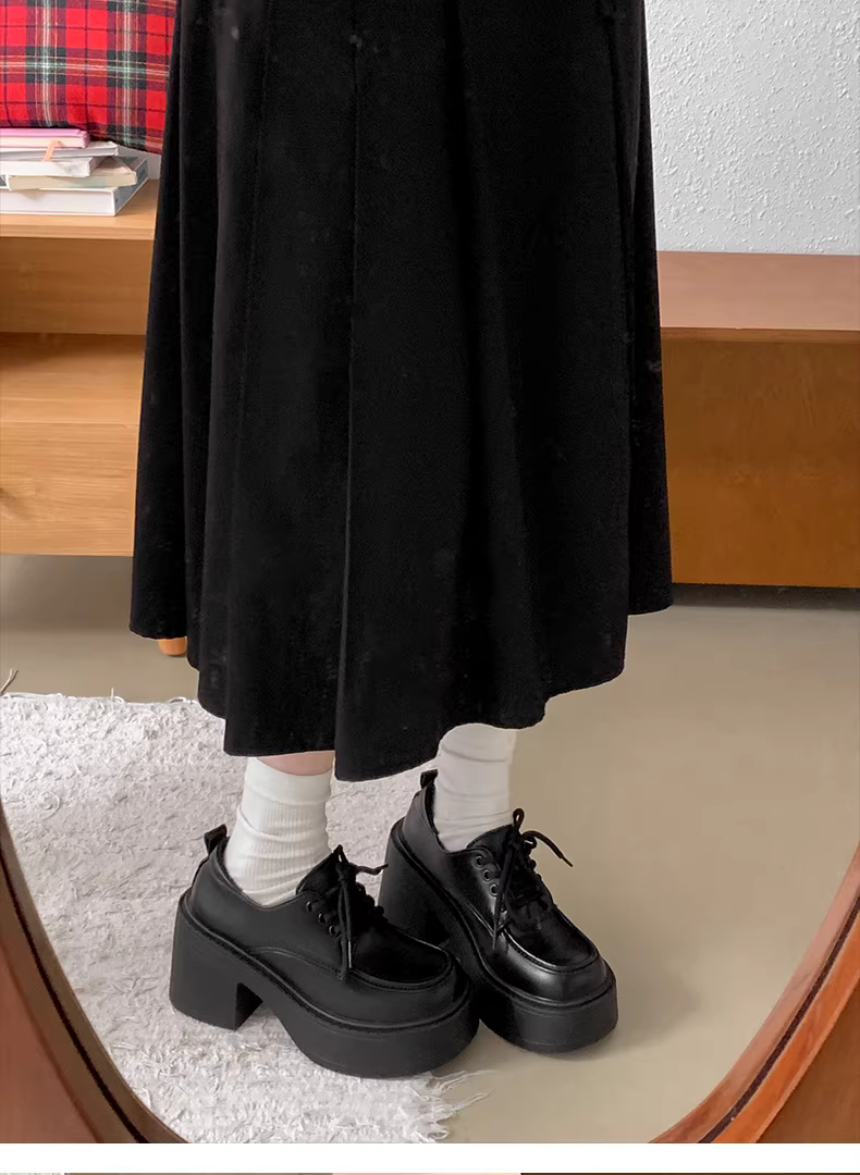 - Giày da nữ đế dày gót vuông đen, kiểu Mary Jane, tăng chiều cao, đa năng, mùa thu mới 2025, phối được với chân váy