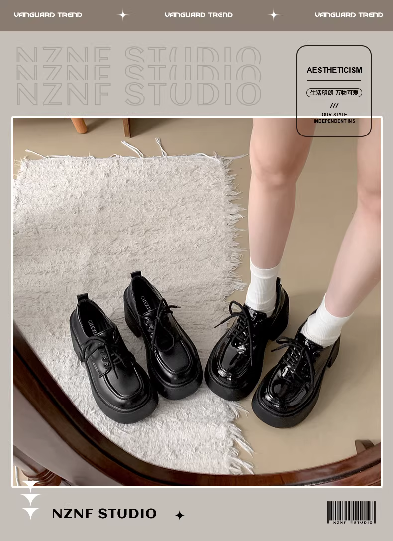 Giày da nữ đế dày gót vuông đen, kiểu Mary Jane, tăng chiều cao, đa năng, mùa thu mới 2025, phối được với chân váy
