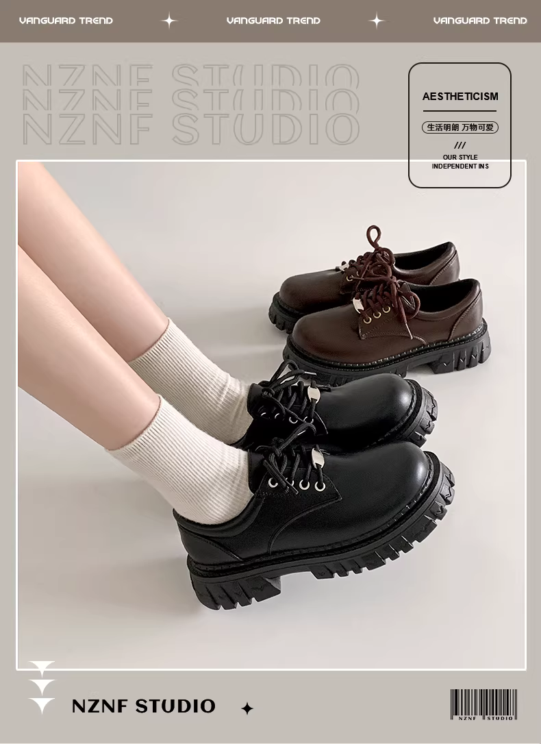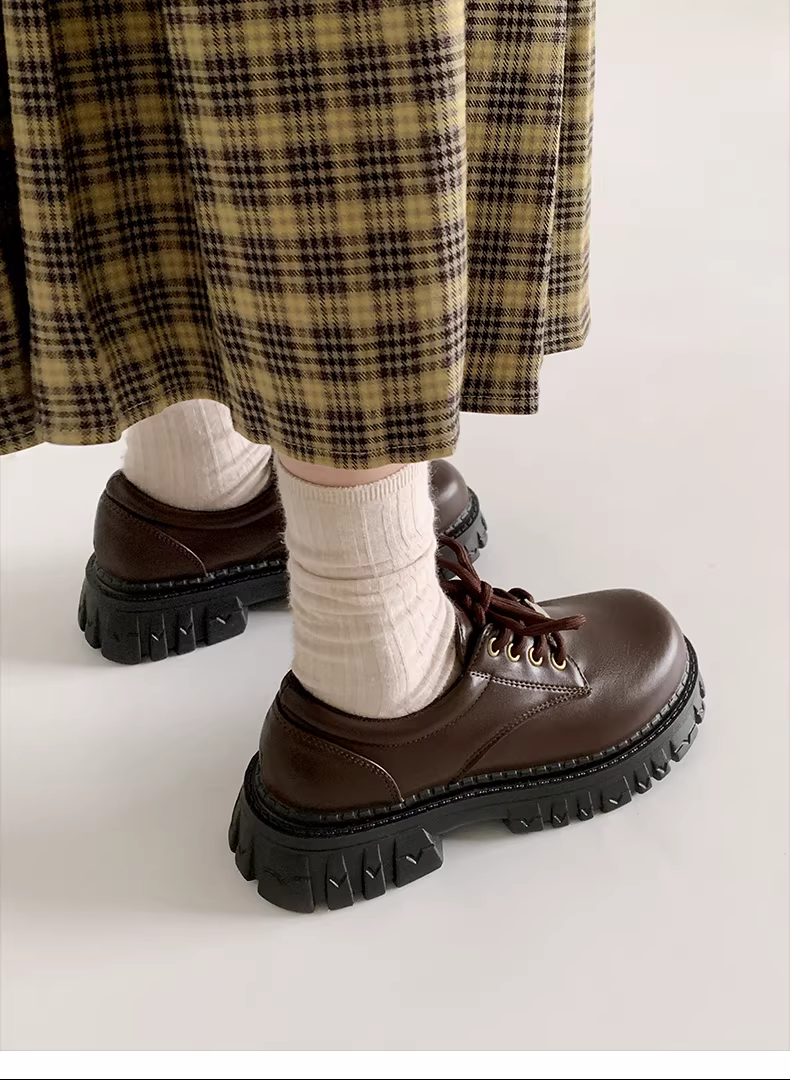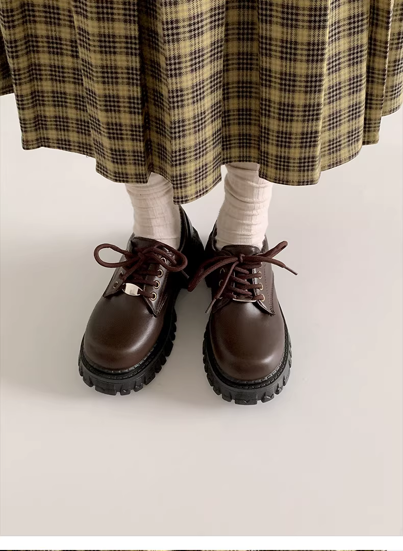 - Giày da nữ đế dày kiểu Anh cổ điển, kiểu dáng mới mùa thu 2025, phối chân váy, kiểu Mary Jane.