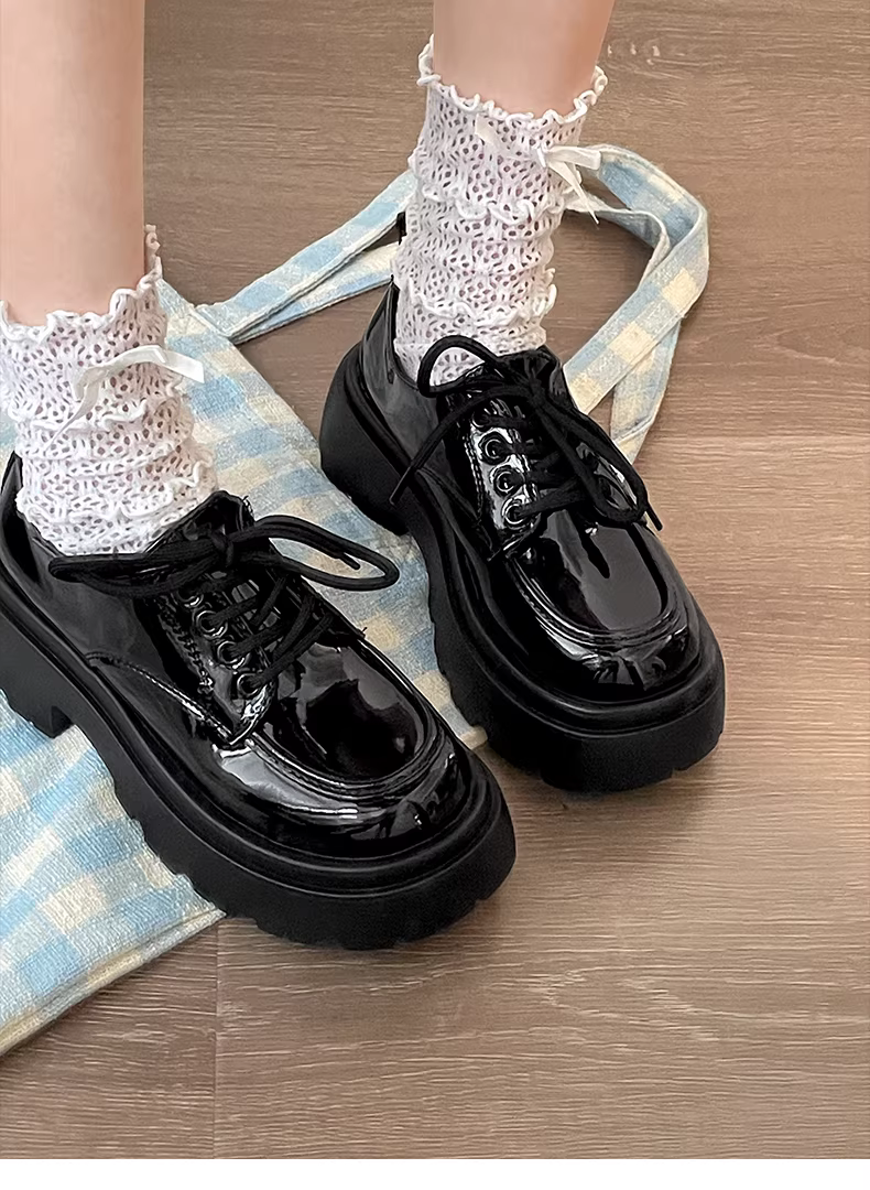 - Giày da nữ đế dày kiểu Anh cổ điển màu đen, kiểu dáng mới mùa thu 2025, phối chân váy, kiểu Mary Jane