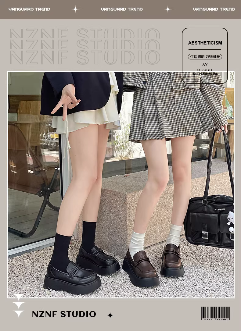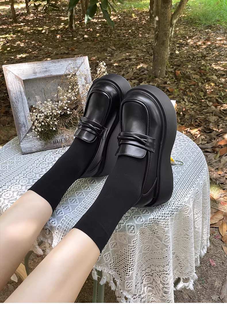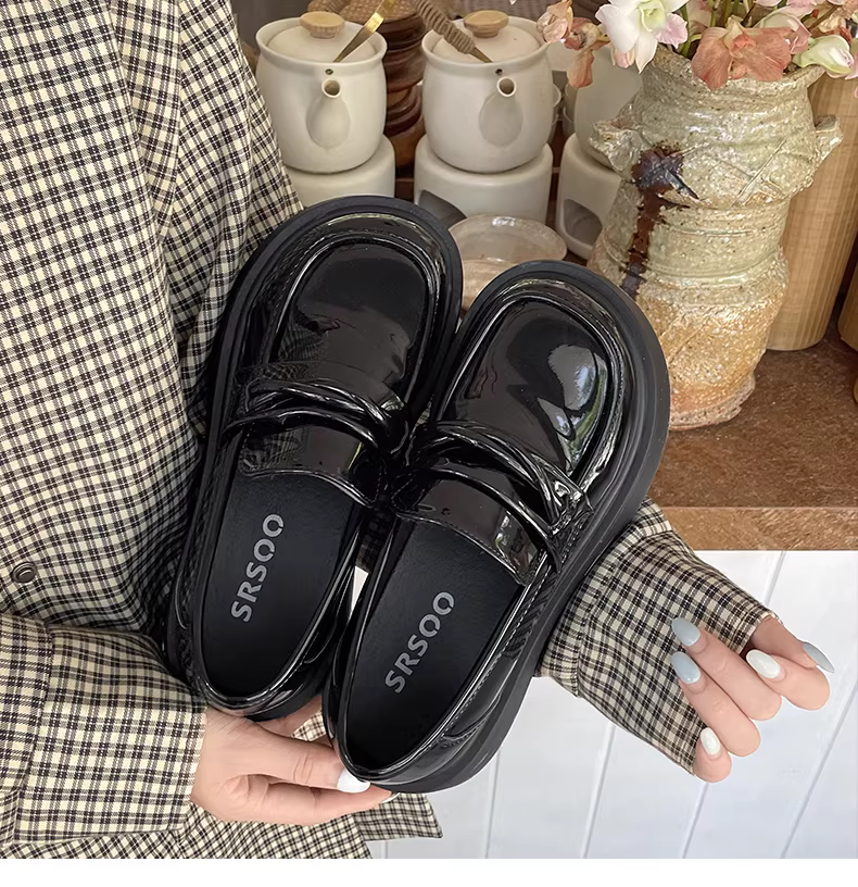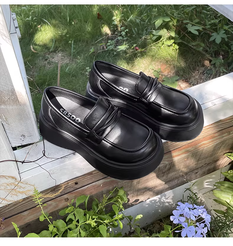 - Giày da nữ đế dày kiểu Anh cổ điển, phong cách mùa thu mới 2025, tăng chiều cao, phối được với chân váy và giày lười