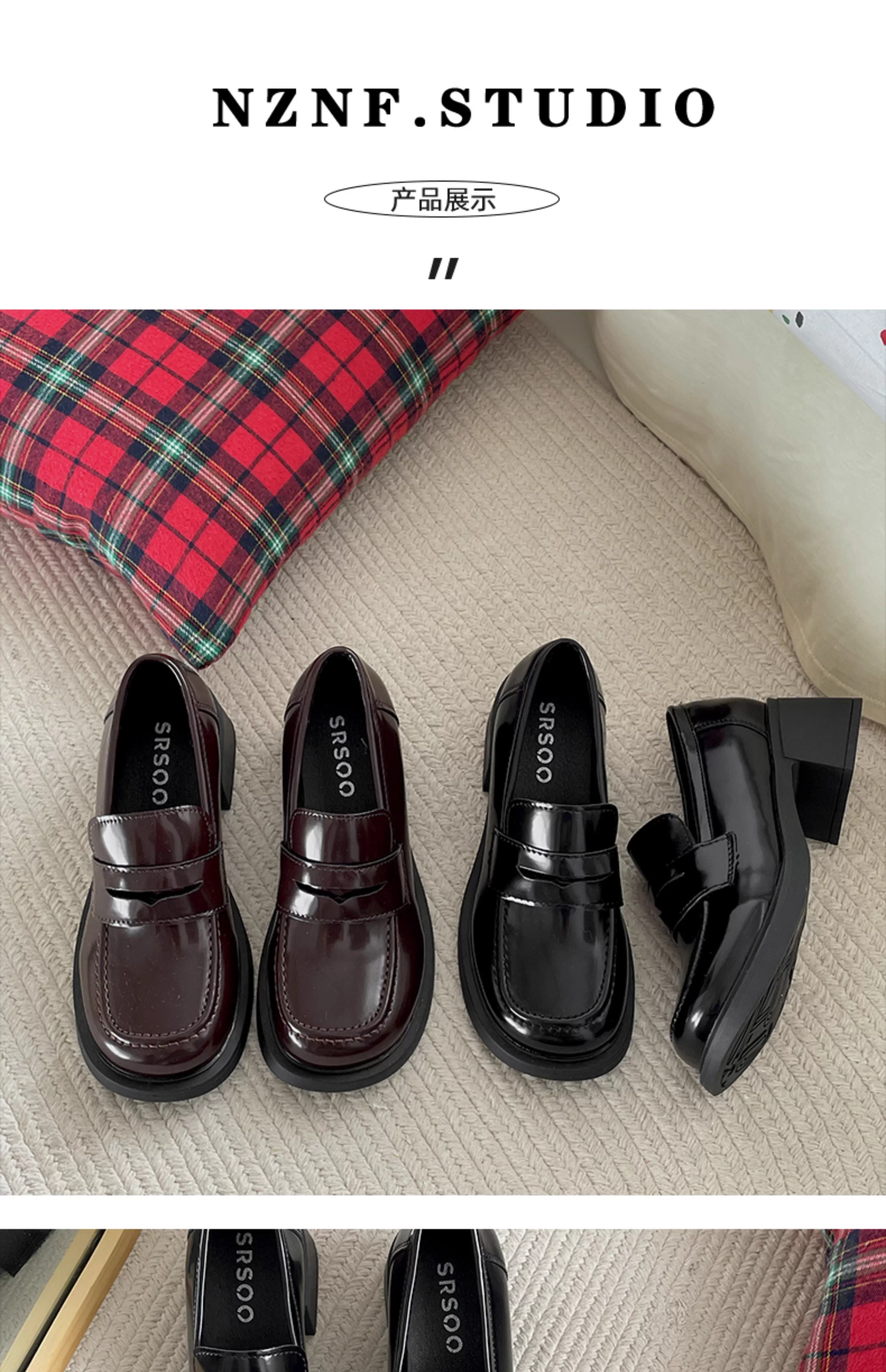 - Giày da nữ đế dày kiểu Anh đen, gót thấp, dáng nhỏ nhắn, kiểu retro mùa thu mới 2025, kiểu lười