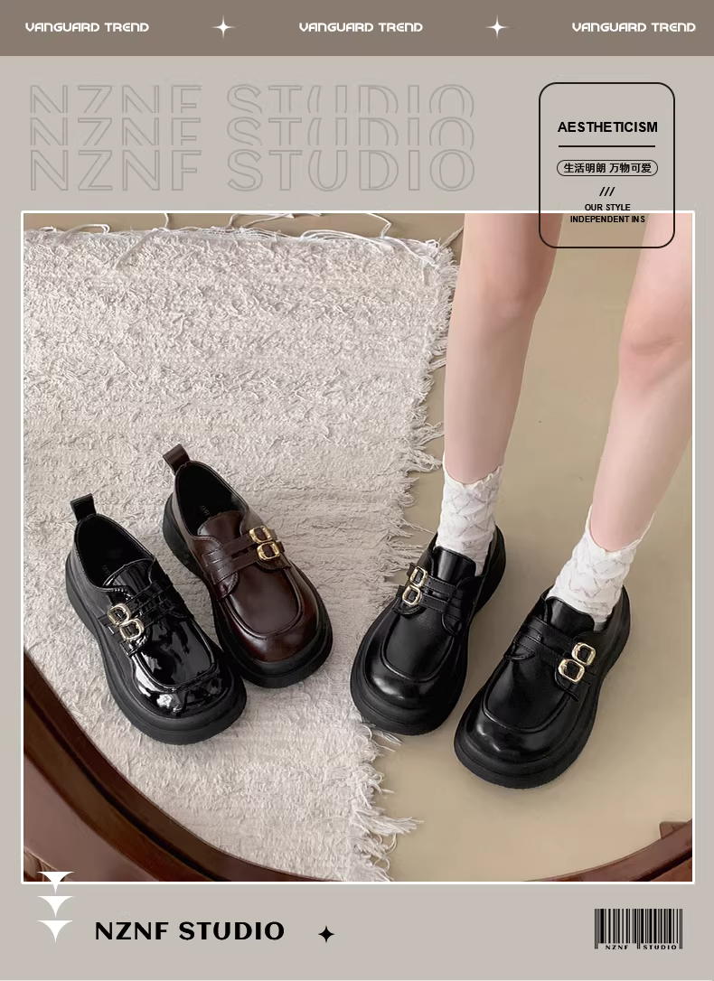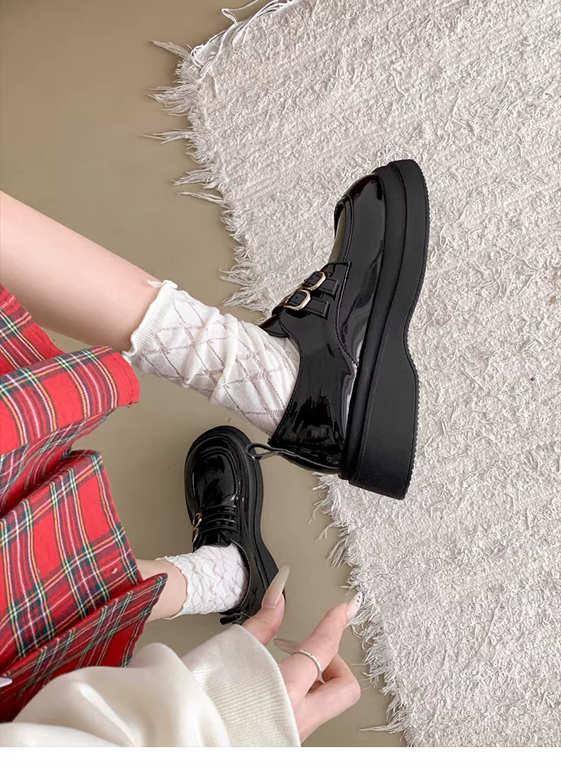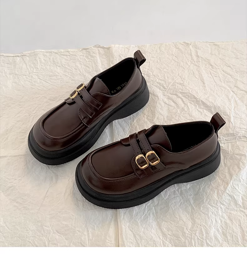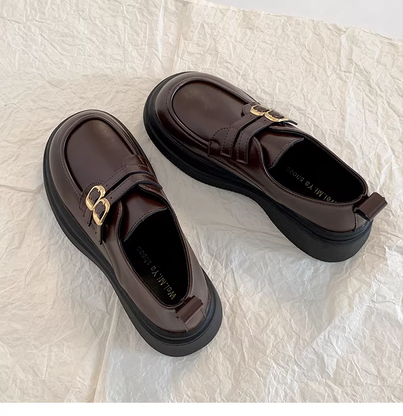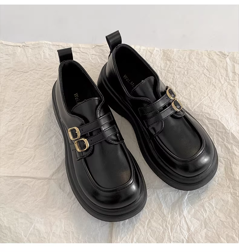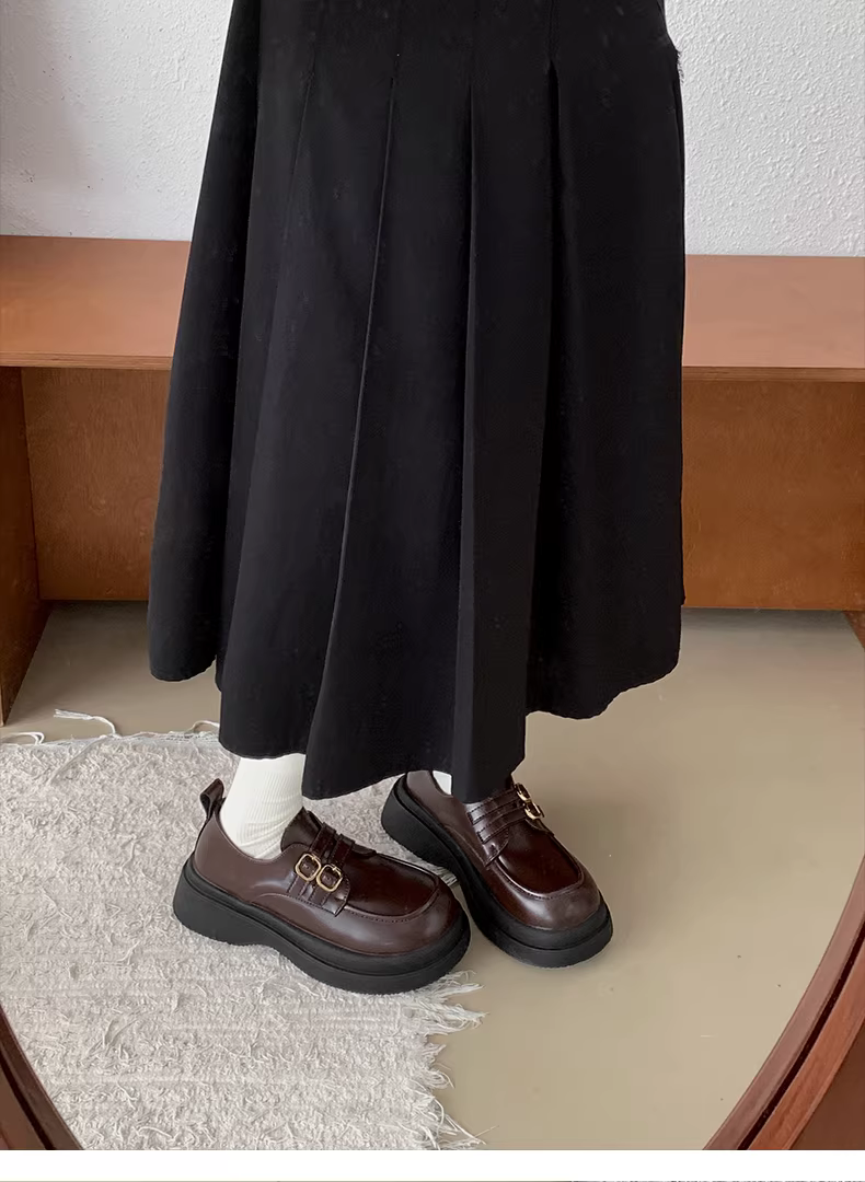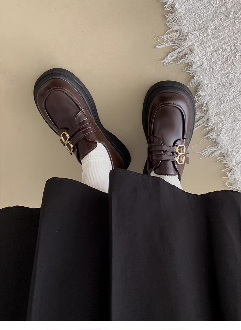 - Giày da nữ đế dày kiểu Pháp cổ điển màu đen, mẫu mới thu 2025, phong cách đa năng, phối chân váy, kiểu Anh, gót dày, giày đơn.