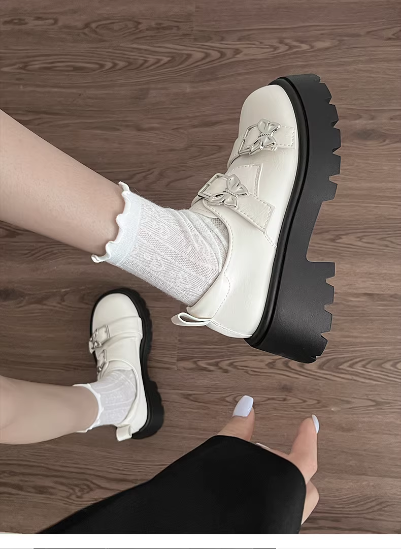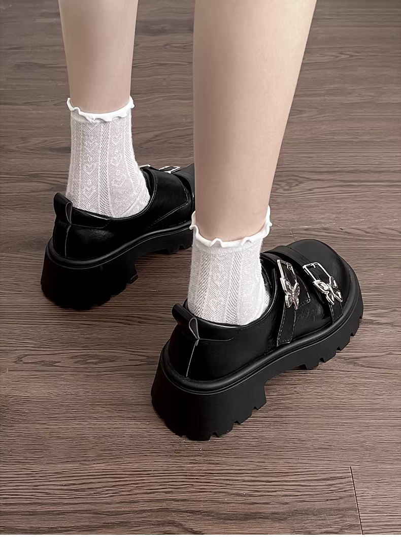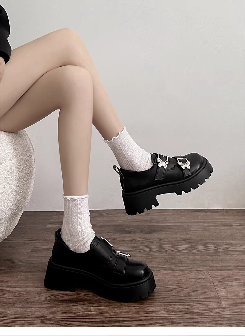 - Giày da nữ đế dày mũi tròn kiểu Pháp cổ điển màu đen, mẫu mới thu 2025, đa năng, phối chân váy, gót dày, giày đơn.