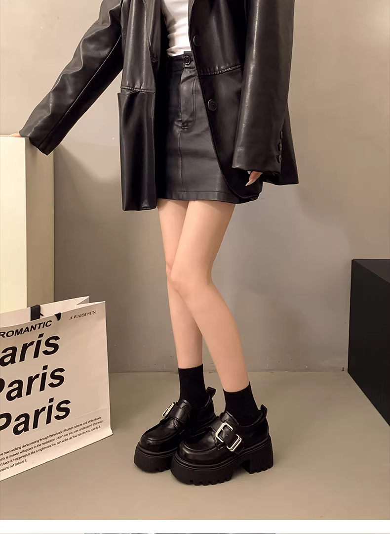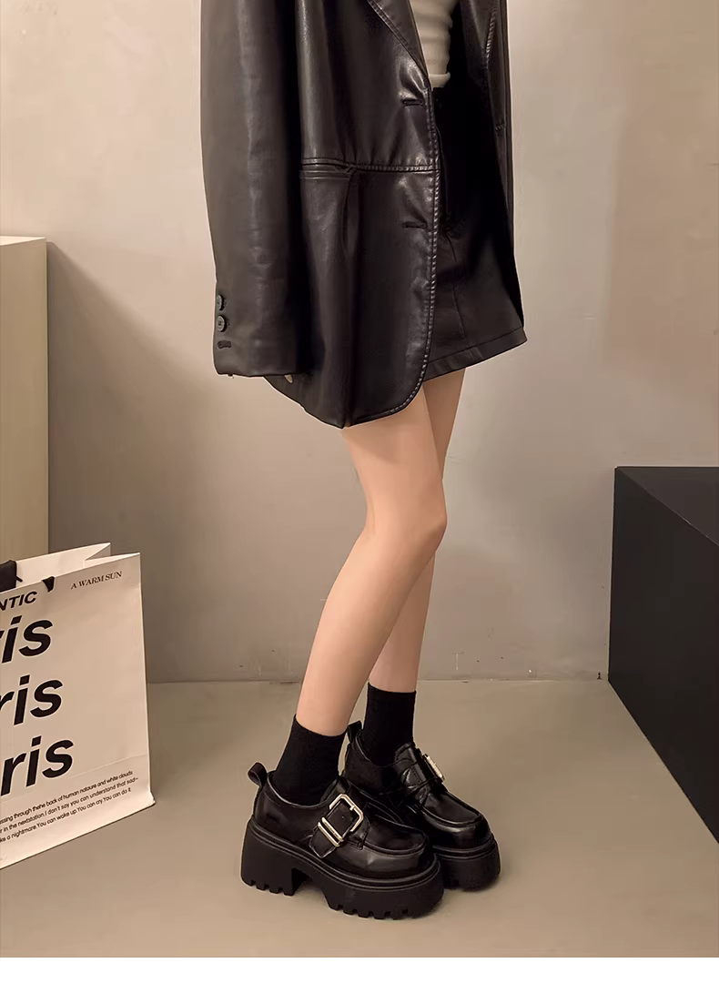 - Giày da nữ đế dày phong cách Anh quốc cổ điển đa năng màu đen, kiểu mới mùa thu 2025, phối chân váy, kiểu Mary Jane