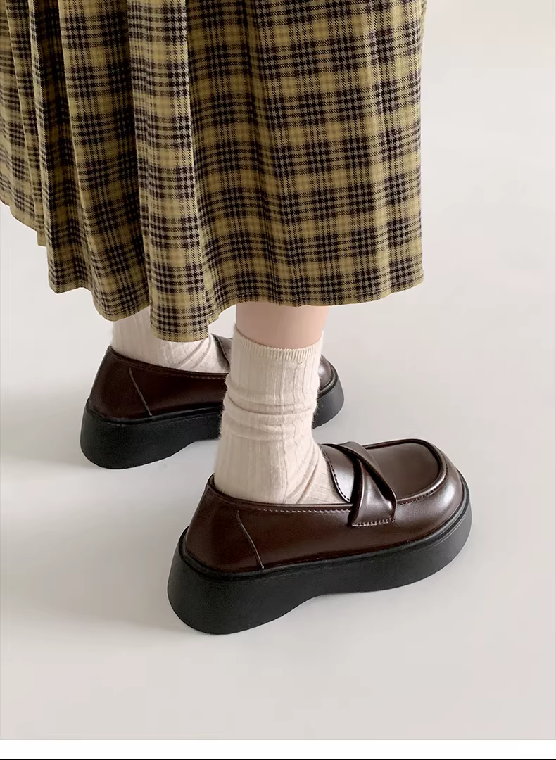 - Giày da nữ đế dày phong cách retro Anh, kiểu lười, mới cho mùa thu 2025.