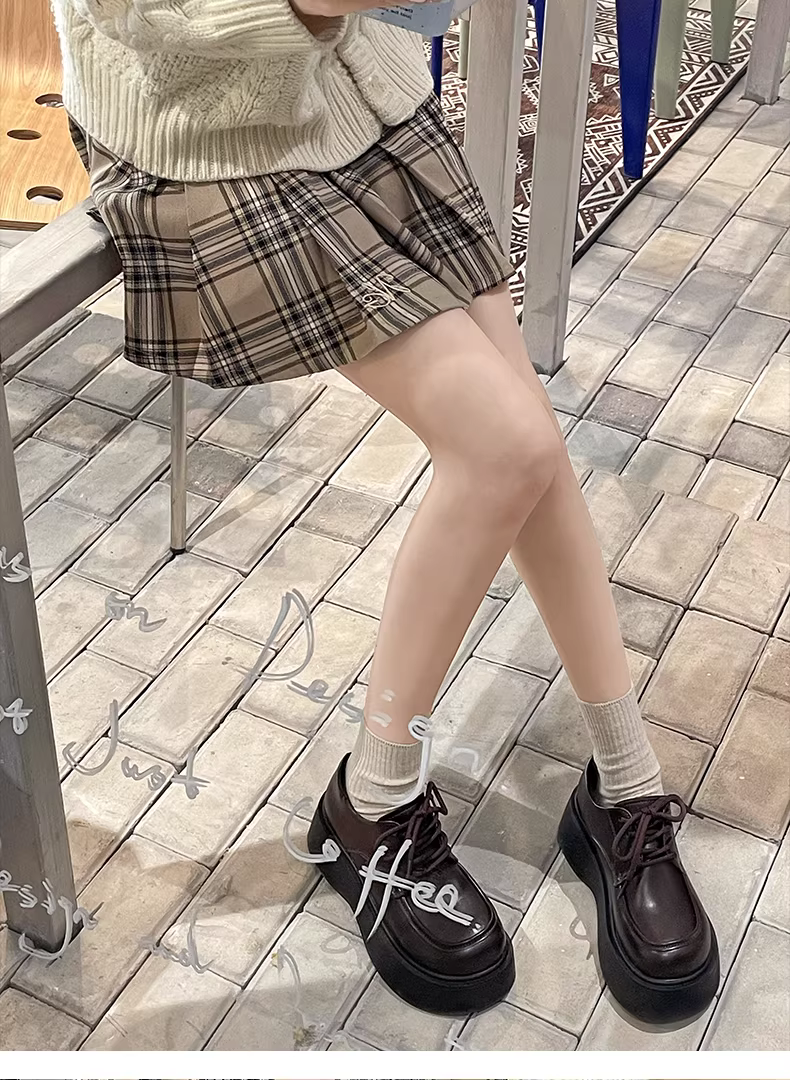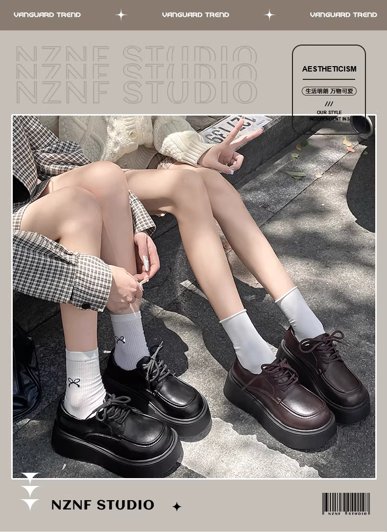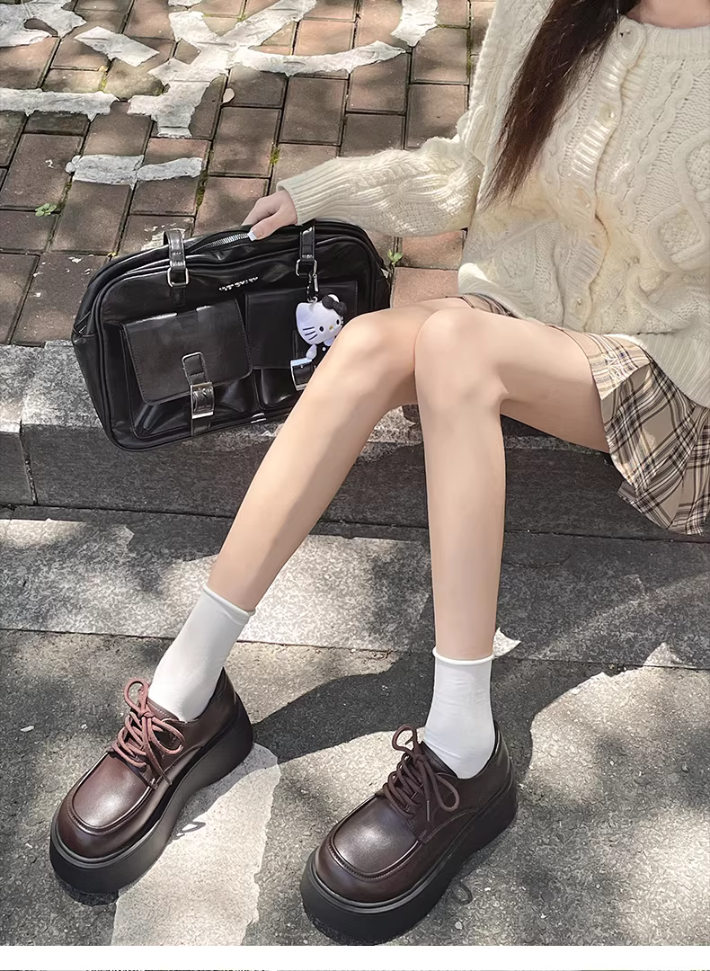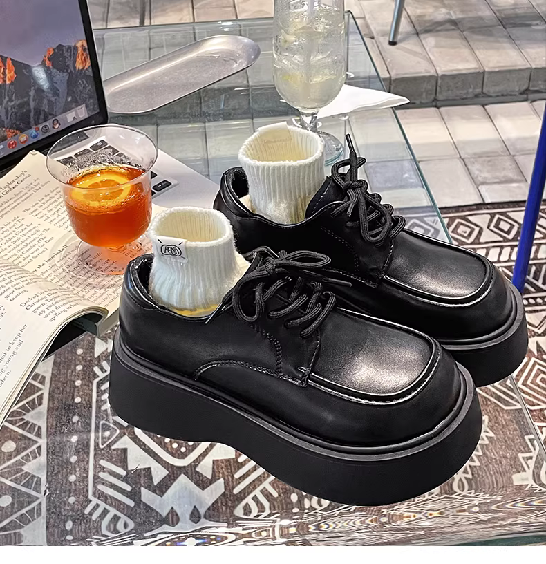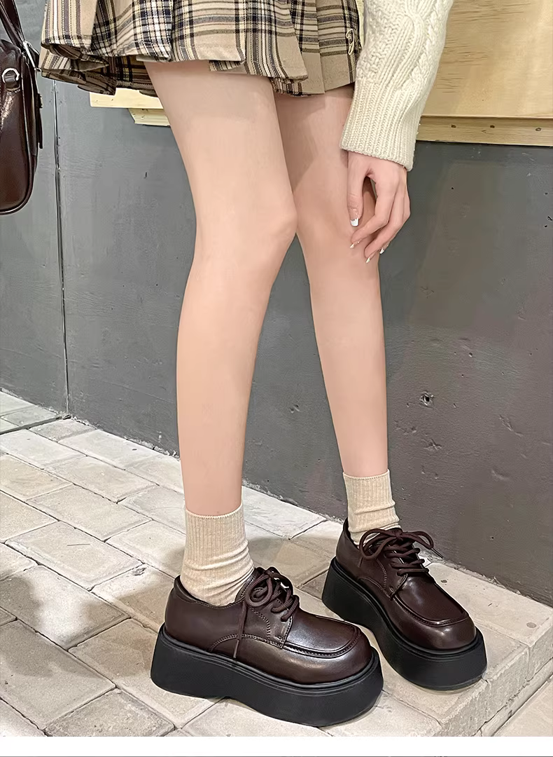 - Giày da nữ đế dày tăng chiều cao kiểu retro, xu hướng mùa thu 2025, phối chân váy, kiểu Mary Jane.