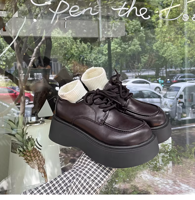 Giày da nữ đế dày tăng chiều cao kiểu retro, xu hướng mùa thu 2025, phối chân váy, kiểu Mary Jane.