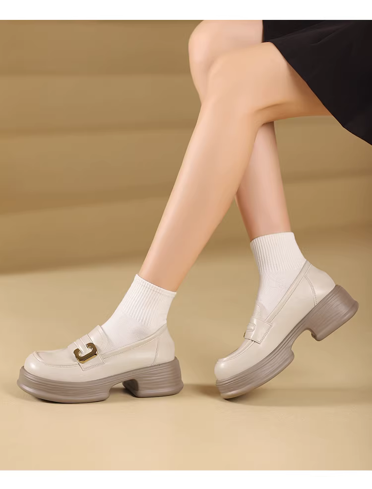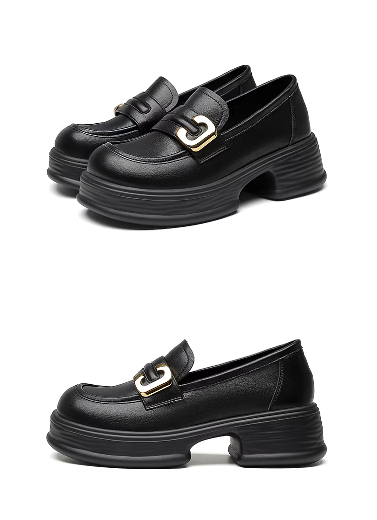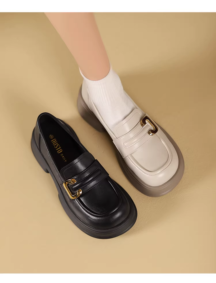 - Giày da nữ đế rộng mũi tròn 2025 mới thu đông đế dày tăng chiều cao kiểu Anh giày lười đế mềm giày đơn