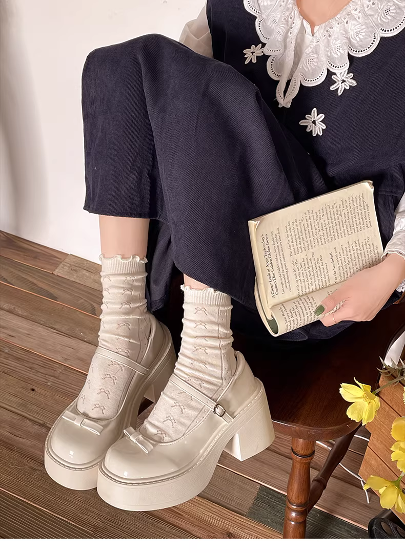 - Giày da nữ đế thô mũi tròn màu trắng kiểu Mary Jane, mùa thu mới 2025, đa năng, phối chân váy, gót cao