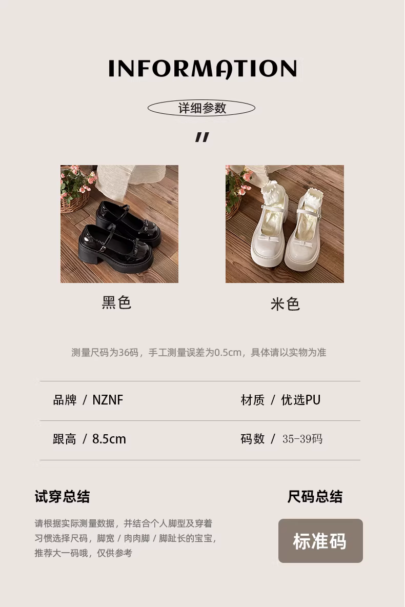 Giày da nữ đế thô mũi tròn màu trắng kiểu Mary Jane, mùa thu mới 2025, đa năng, phối chân váy, gót cao