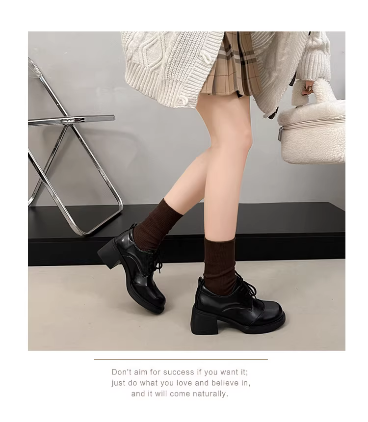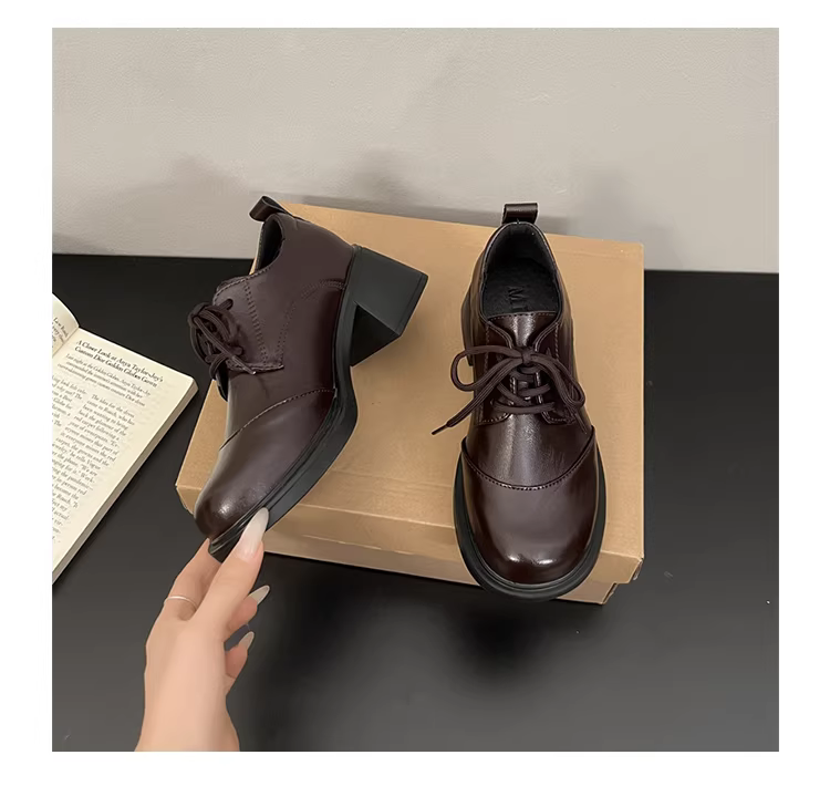 - Giày da nữ đế xuồng cao phong cách retro Anh quốc màu đen, kiểu dáng mới mùa thu 2025, đa năng, dễ phối với chân váy
