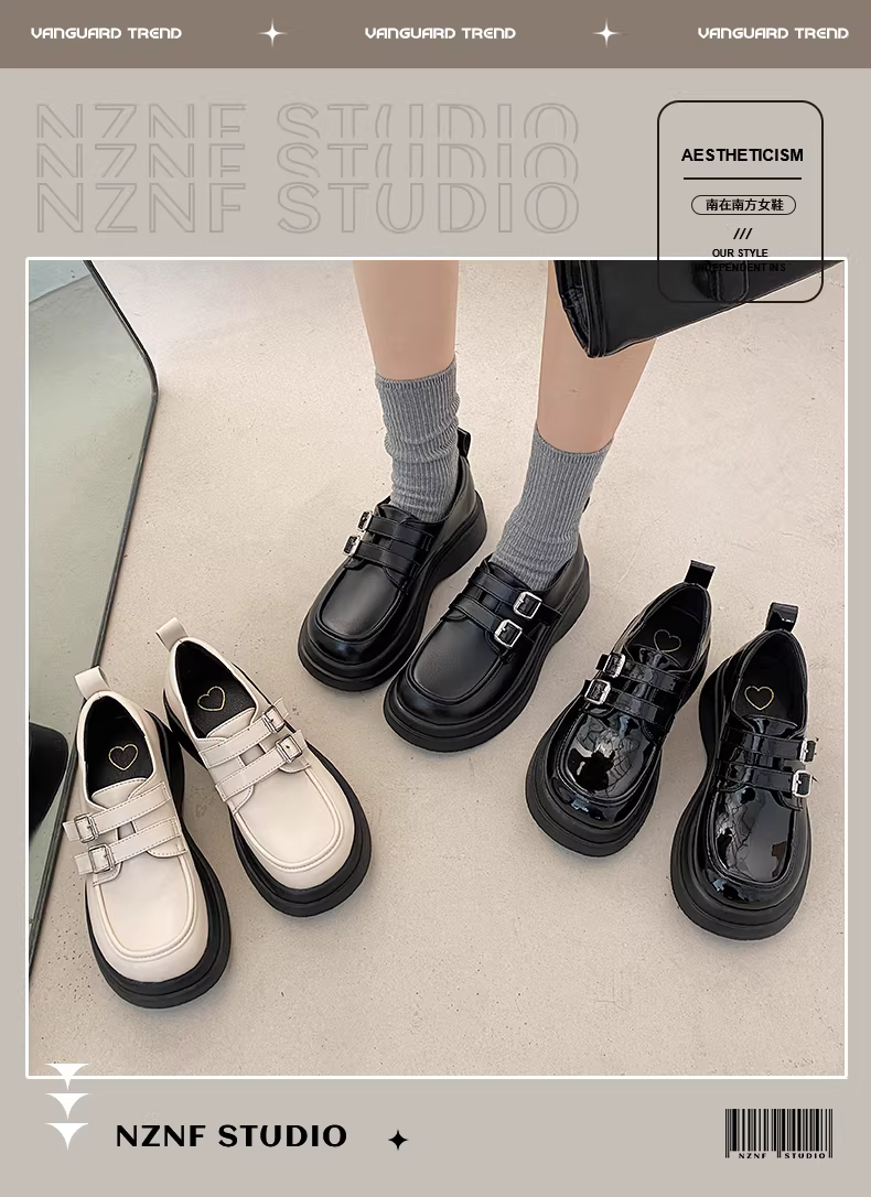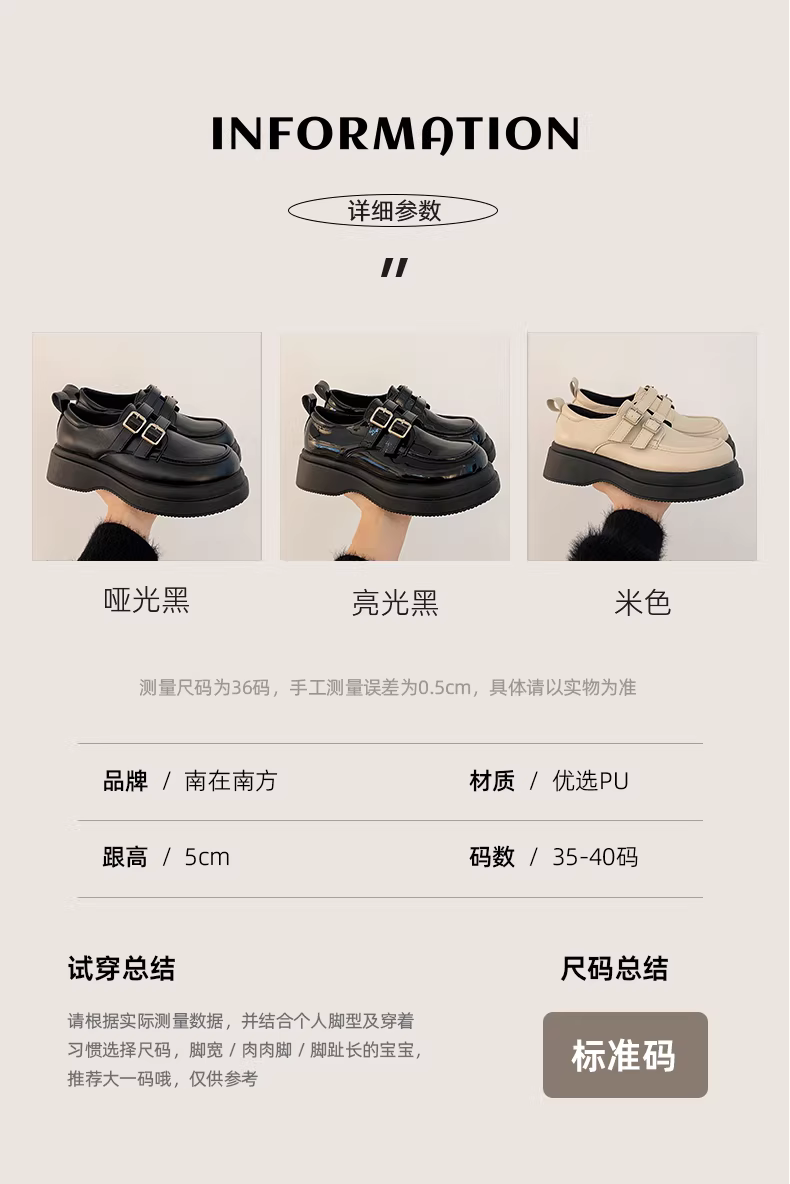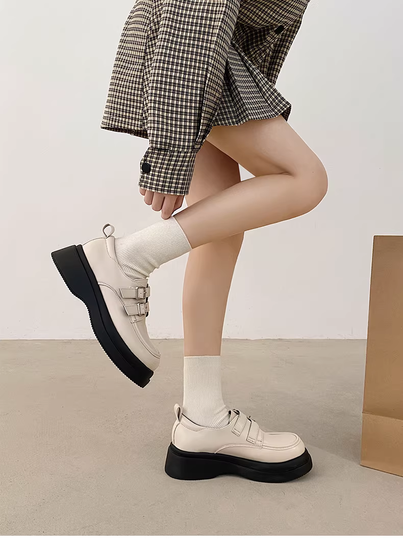 Giày da nữ kiểu Anh, mũi tròn, màu trắng, đa năng, đế dày, kiểu Mary Jane, mẫu mới thu 2025.