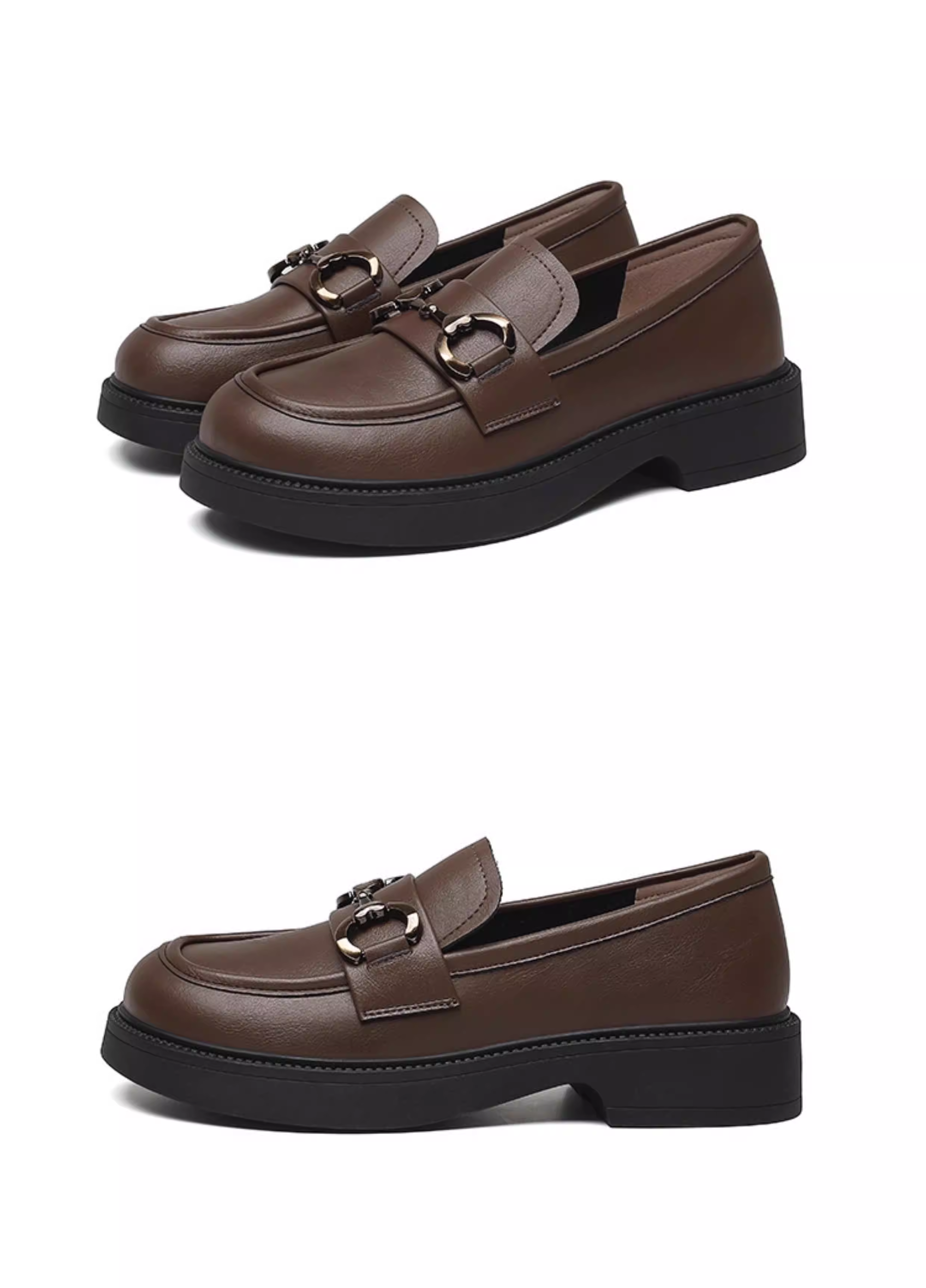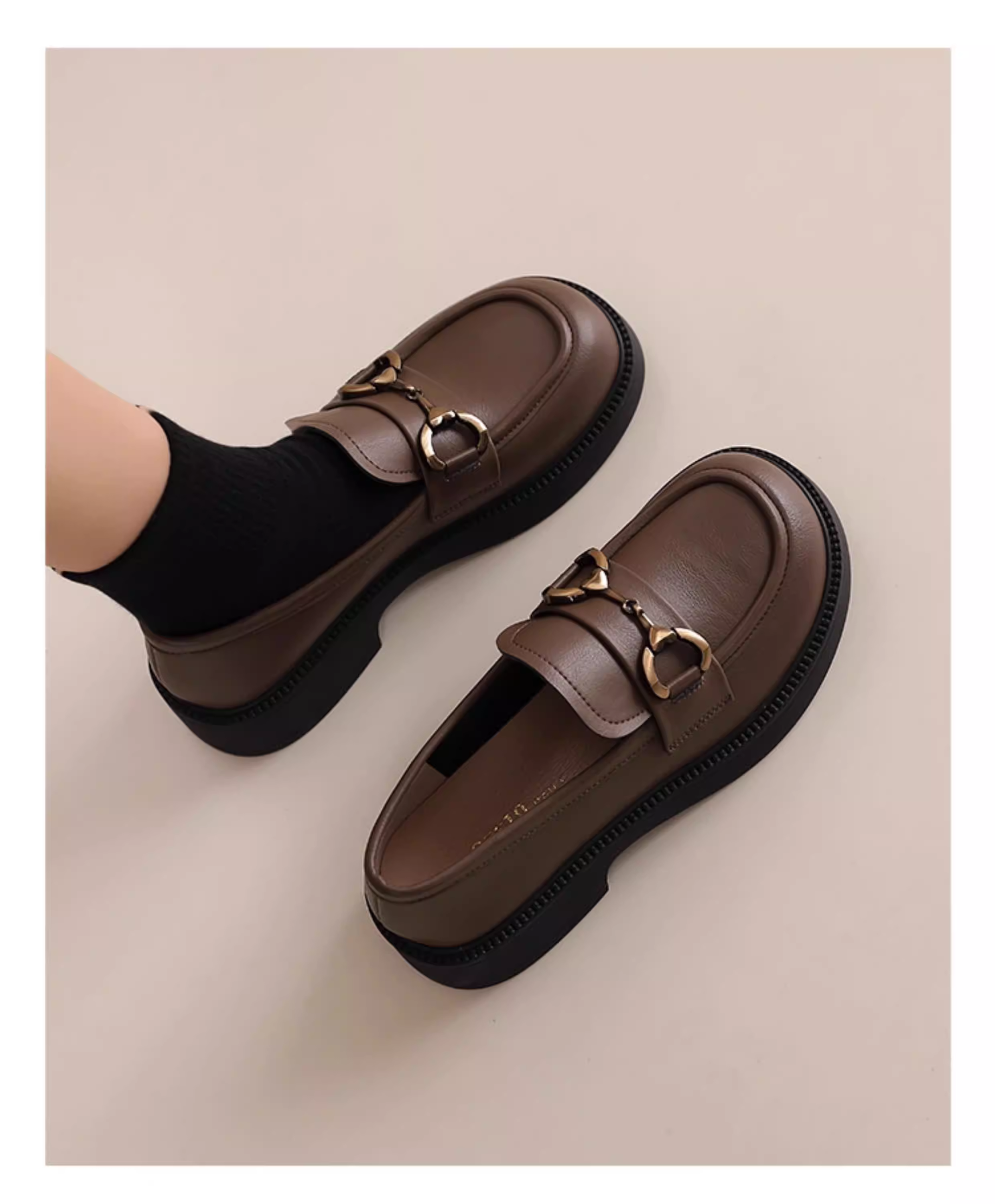 - Giày da trắng Dadong dành cho nữ 2025, mẫu mới thu đông, mũi tròn, đa năng, giày đơn đế dày, kiểu lười, giày nữ
