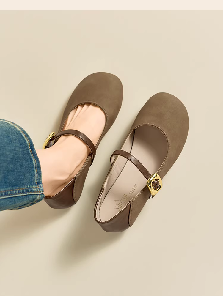 Giày Dadong Birkenstock dành cho nữ, giày nữ mới mùa thu đông 2025, giày dạ hội phối chân váy, giày đế thấp, giày Mary Jane.